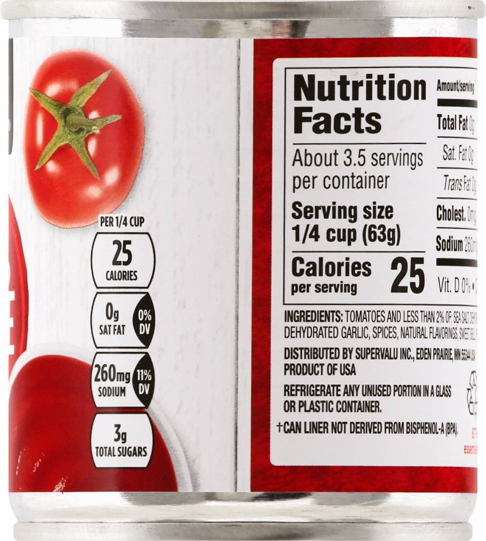 Tomatoes and Less than 2% of: Sea Salt, Dehydrated Onions, Dehydrated Garlic, Spices, Natural Flavorings, Sweet Bell Pepper, Citric Acid.