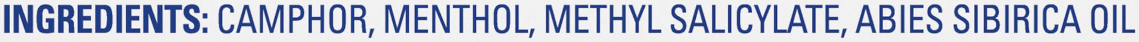 Ingredients: Camphor Menthol Methyl Salicylate Siberian Fir (Abies Sibirica) Oil.