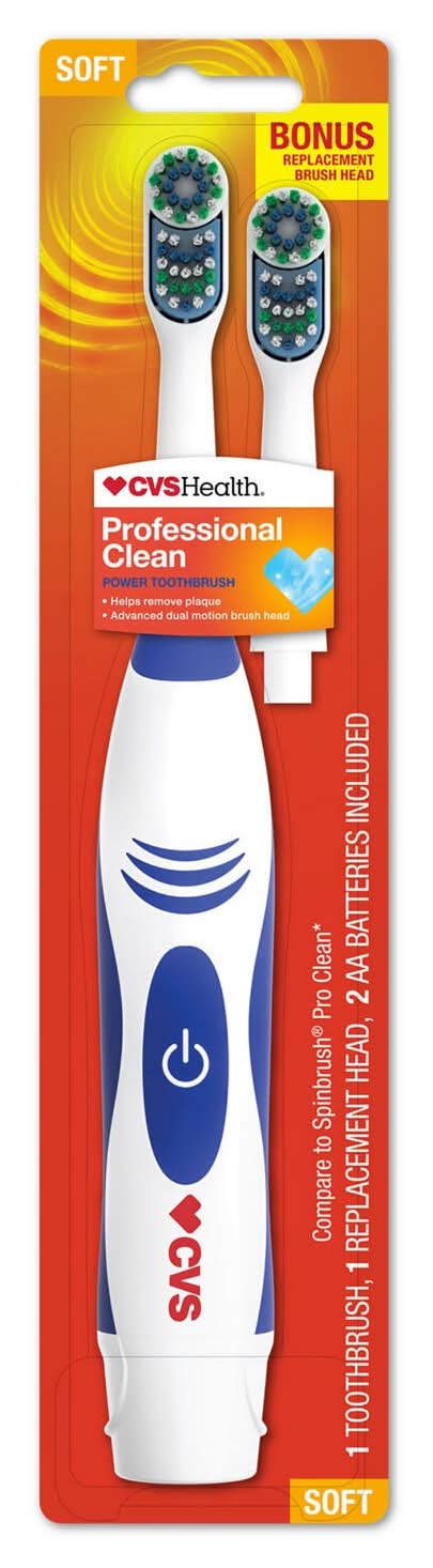 CVS Health Soft Bristle Professional Clean Power Toothbrush (2 ct)