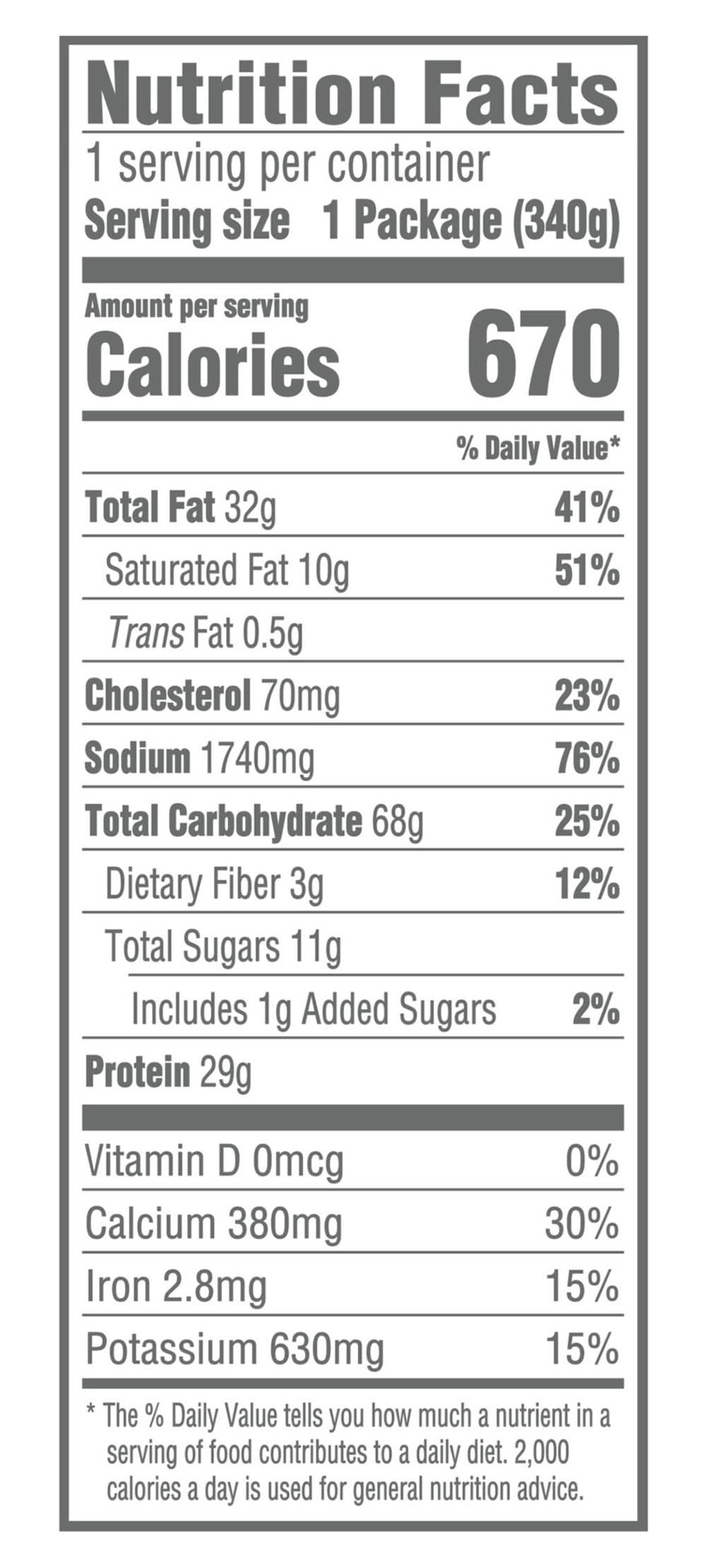 Ingredients: Sauce Water, Pasteurized Process White Cheddar Cheese [Cheddar Cheese Cultured Milk, Salt, Enzymes, Sodium Phosphate, Milkfat, Salt], Soybean Oil, Whey Protein Concentrate, Cayenne Pepper Puree [Cayenne Peppers, Salt, Acetic Acid], Nonfat Milk, Distilled White Vinegar, Modified Cornstarch, Sodium Phosphate, Modified Cellulose, Potassium Chloride, Annatto Extract [Color], Cooked Enriched Macaroni Product Water, Enriched Macaroni Product [Semolina Wheat Flour, Niacin, Ferrous Sulfate, Thiamin Mononitrate, Riboflavin, Folic Acid], Carrageenan, Fully Cooked Boneless Breaded Chicken Breast Meat with Rib Meat Chicken Breast Meat with Rib Meat, Water, Salt, Potato Starch, Sodium Phosphates. Breaded with Wheat Flour, Bread Crumb [Bleached Wheat Flour, Dextrose, Salt, Dried Yeast, Yellow Corn Flour, Soybean Oil, Oleoresin Paprika and Annatto Color], Water, Bread Crumb [Bleached Wheat Flour, Wheat Flour, Modified Corn Starch, Salt, Dextrose, Mono and Diglycerides, Soybean Oil, Modified Wheat Starch, Rice Starch, Flavor Yeast, Dextrose, Silicon Dioxide, Caramel Color, Extractives of Paprika Color, Natural Flavor, Soy Lecithin], Modified Corn Starch, Cracker Meal [Bleached Wheat Flour, Soybean Oil], Salt, Rice Flour, Wheat Gluten, Leavening [Sodium Bicarbonate, Sodium Aluminum Phosphate, Monocalcium Phosphate, Sodium Acid Pyrophosphate], Spices, Dried Egg Whites, Yellow Corn Flour, Rice Starch, Dextrose, Disodium Inosinate and Disodium Guanylate, Citric Acid, Garlic Powder, Onion Powder, Yeast Extract, Hydrolyzed Soy Protein, Extractives of Paprika Color, Sugar, Guar Gum, Caramel Color, Sunflower Oil], Blue Cheese Cultured Milk, Salt, Enzymes. Contains: CONTAINS: MILK, WHEAT, SOY, EGG.