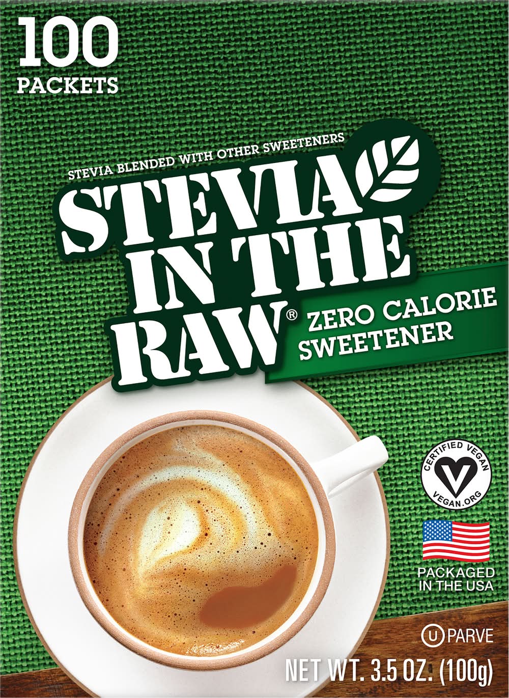 Enjoy your sweet moments with Stevia In The Raw® zero-calorie* sweetener. It's an extract from the sweet leaves of the stevia plant. The delicious flavor comes without any calories. So go on, sweeten a tea, hot or cold, sprinkle it on cereal. Bake and cook with it too. Whatever you do, just do it with Stevia In The Raw®. Just one packet has the approximate sweetness of two teaspoons of sugar. Sweeten a tea, a cup of coffee. Sprinkle it on cereal or fruit. Rooted in Brooklyn, the In The Raw® sweetener family business began long before the natural food movement. Since introducing our original Sugar In The Raw® In 1970, we have branched out into other sweetener sources found in nature giving us Agave In The Raw®, Monk Fruit In The Raw®, and of course Stevia In The Raw®, That leads us to this box of zero-calorie Stevia In The Raw. Each packet has the sweetness of about two teaspoons of sugar, without all the calories. How sweet is that? Zero-calorie sweetener made from the stevia plant Each packet provides sweetness without the calories Perfect for adding to hot or cold beverages Can be used in cooking and baking recipes All-natural and non-GMO Cumberland Packing, 2 Cumberland St. Brooklyn, NY 11205 USA