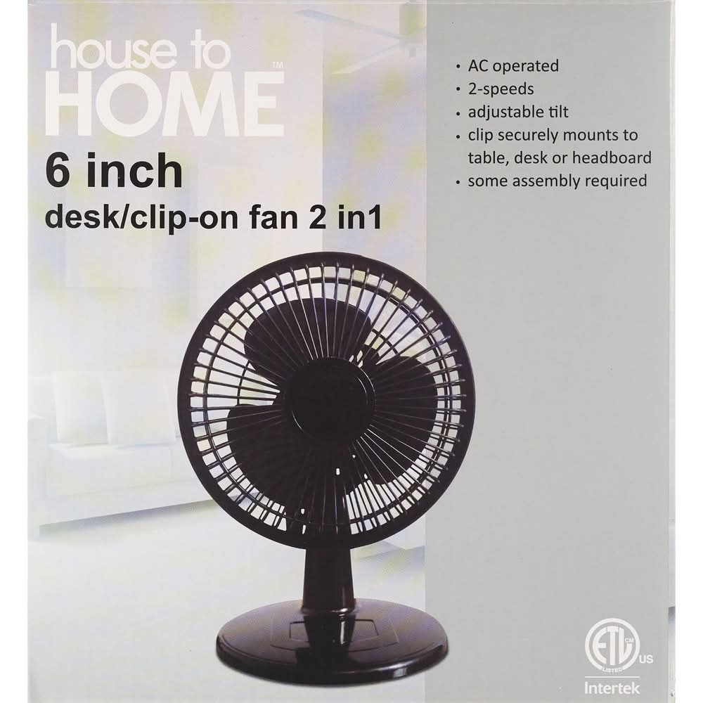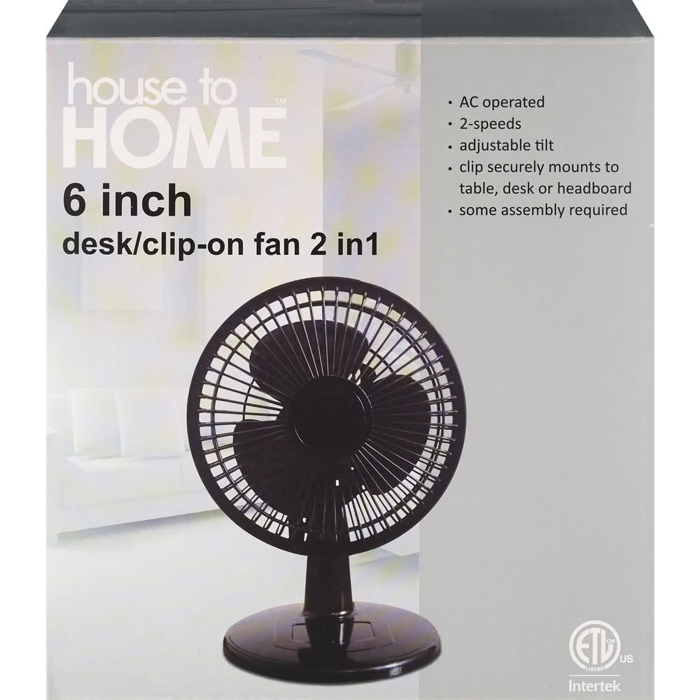 House to Home 2 In 1 Desk Clip on Fan, 6 in, Black