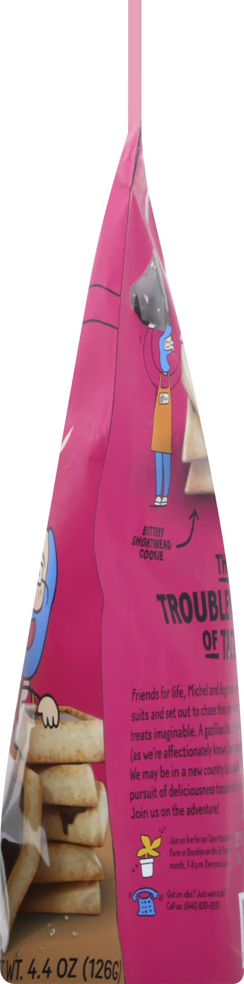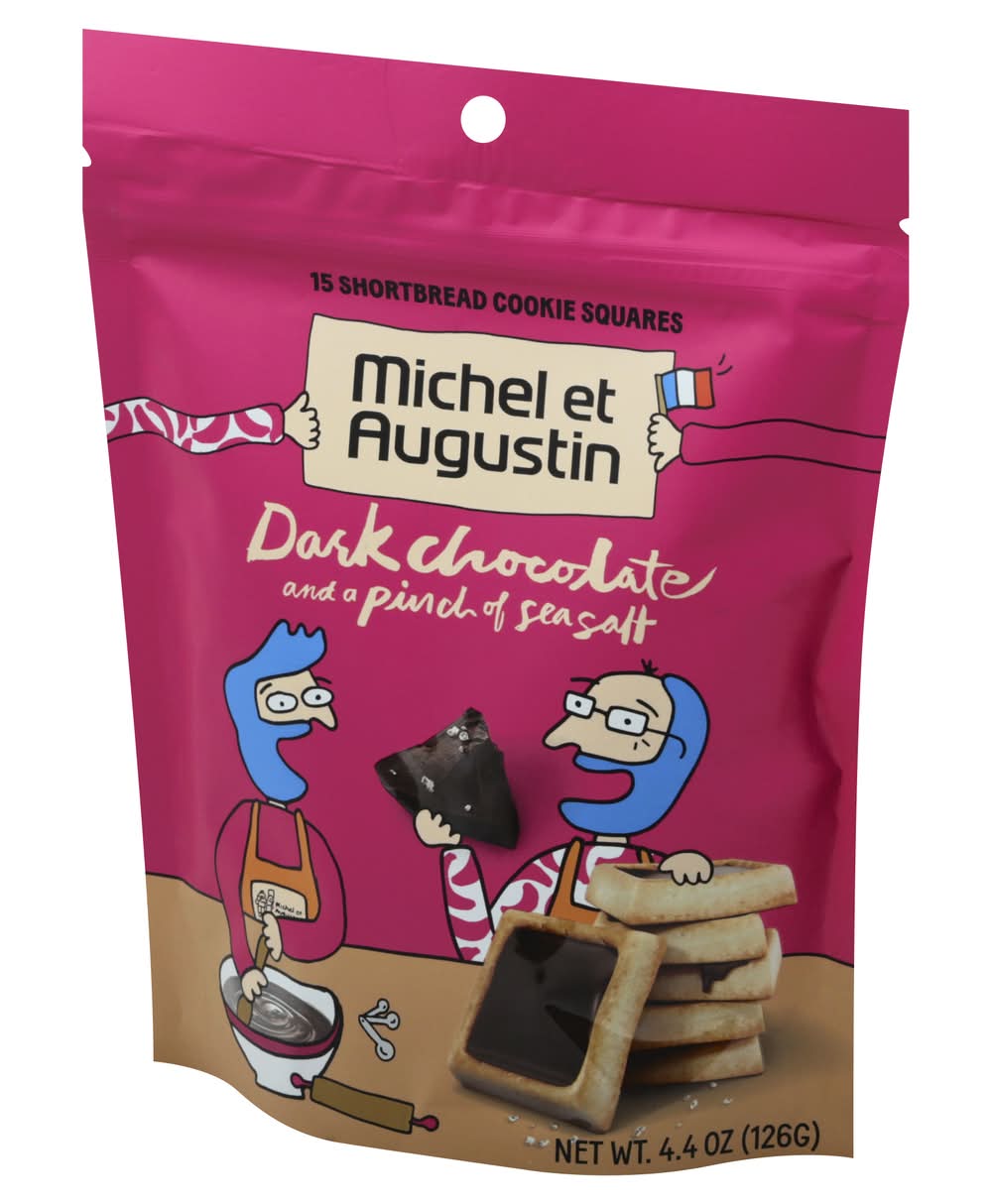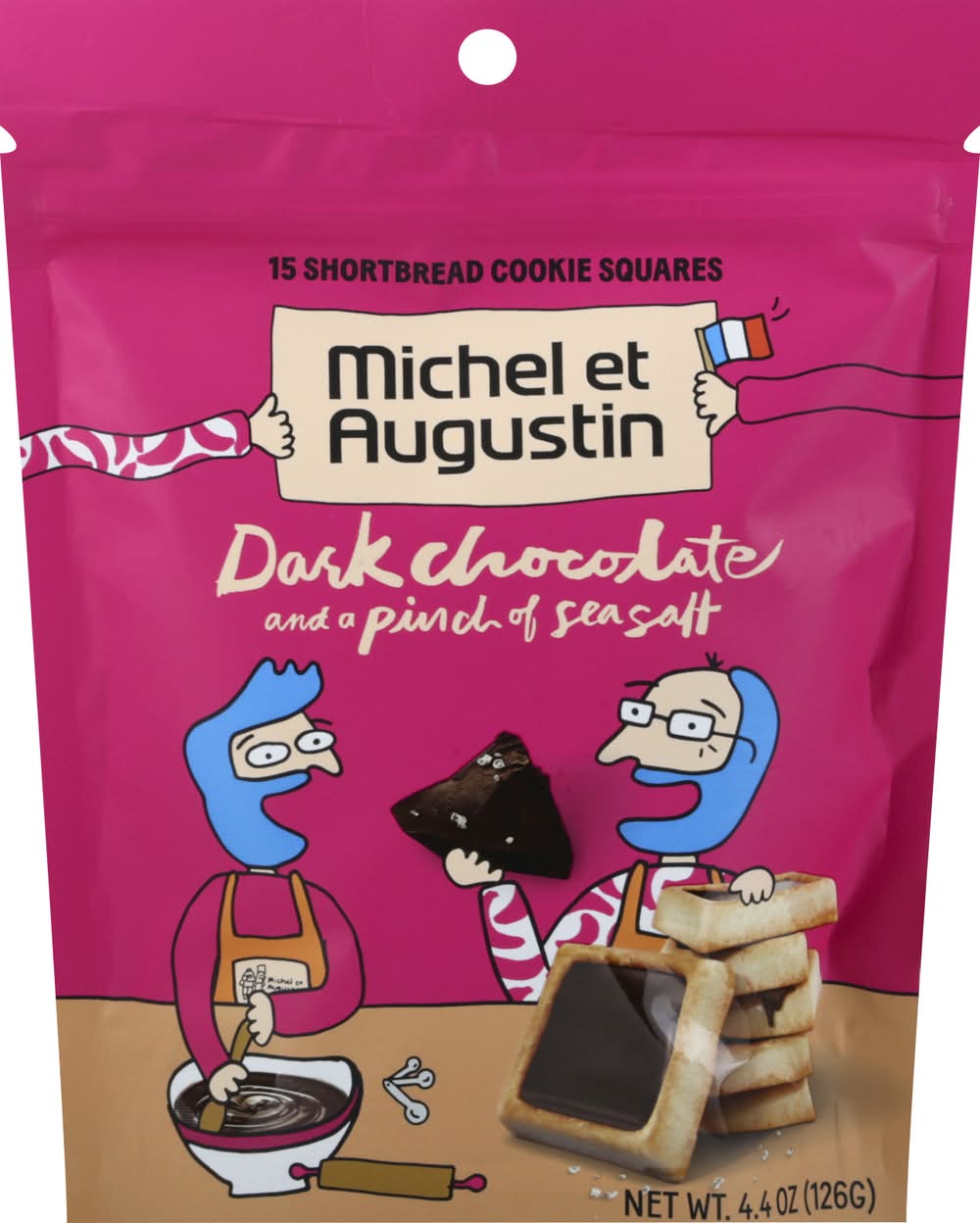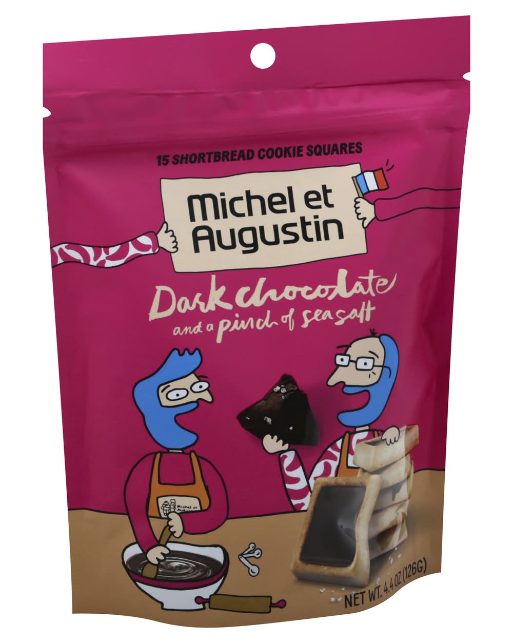 15 Shortbread cookie squares. Dark chocolate. Sea salt. Buttery shortbread cookie. The troublemakers of taste. Friends for life, Michel and Augustin said au revoir to their business suits and set out to chase their dream of making the best French treats imaginable. A gazillion bites later, the Troublemakers of Taste (as we're effectionately known) have brought that dream to the USA. We may be in a new country, but our passion for life, liberty and the pursuit of deliciousness translates tries bien. We've planted our flag. Join us on the adventure! Made with Amour by Sophia G, thib and Rebecca. micheletaugustin.com. Join us live for our Open House at the Banana farm in Brooklyn on the 1st Thursday of every month, 7-8 pm. Everyone is welcome! Got an idea? Just want to chat? Call us (646) 820-0935. Tel: (646) 820-0935. Made with love in France. • Number of servings: 5 • MICHEL ET AUGUSTIN, Brooklyn, NY, 11231, Ph: 646-820-0935