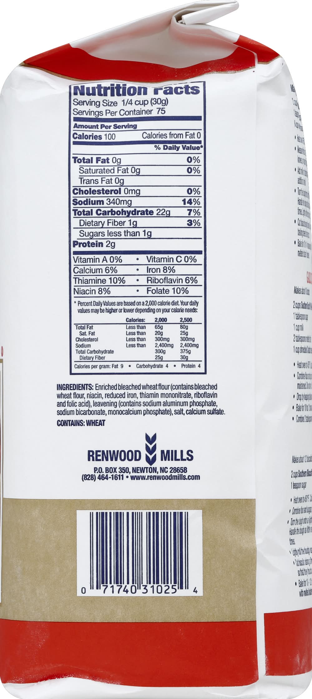 Flour, Self-Rising • Size: 80 OZ • Renwood Mills, PO Box 350,Newton,NC,28658