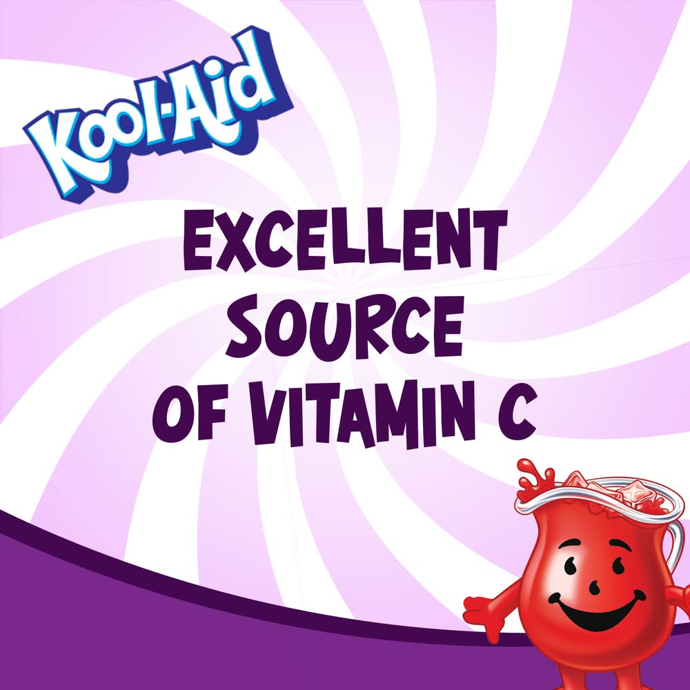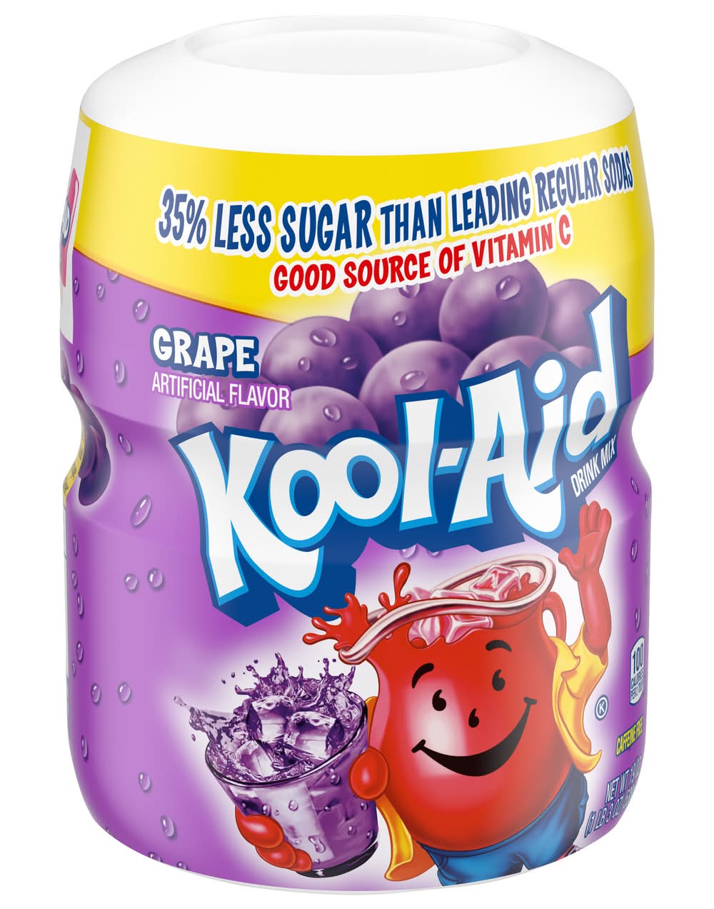 Kool-Aid Artificially Flavored Grape Powdered Drink Mix is a delicious way to stay hydrated. This powdered drink mix makes it easy to prepare a tasty grape drink anywhere, just mix it with water. Quench your thirst with the refreshingly sweet taste of purple grape drink. With 35% less sugar than leading regular sodas (this product 25 grams sugar; leading regular sodas 40 grams sugar per 12 fluid ounce serving) and no caffeine, this artificially flavored grape drink mix is always a great choice for the whole family. It's also a good source of vitamin C. This handy canister of grape drink powder ensures that you always have a refreshing beverage ready-to-go. Enjoy revitalizing grape powdered drink mix at work or at home, or mix drink powder in a bottle of water to take on-the-go. This 19 ounce canister of powdered drink mix is resealable and the easy measure lid makes mixing the perfect amount a breeze. Kraft Heinz Foods Company, Chicago, IL, 60601