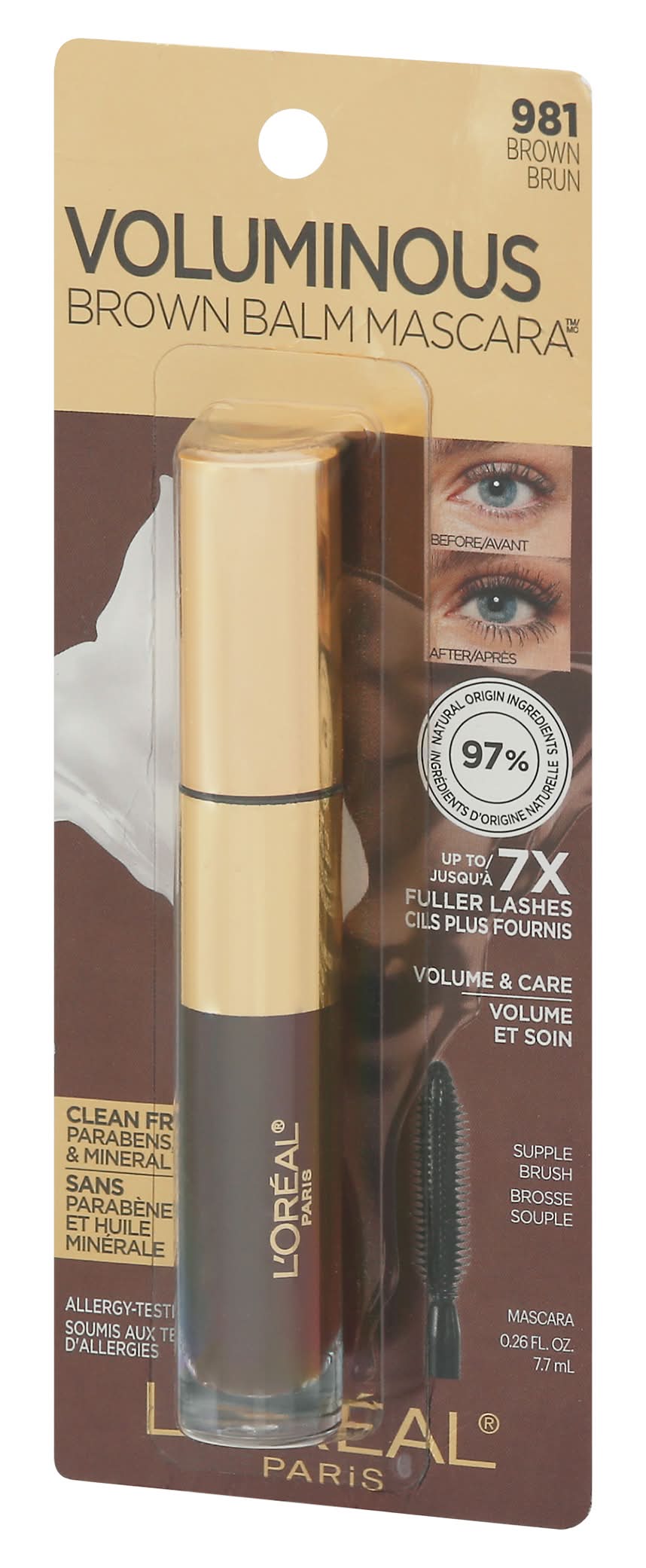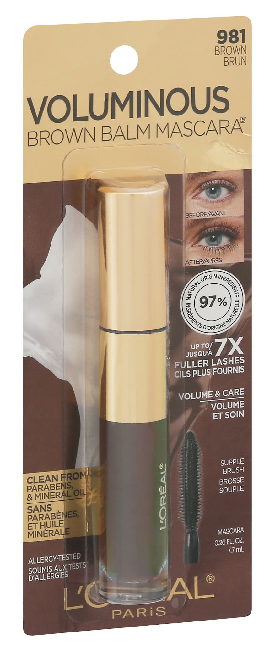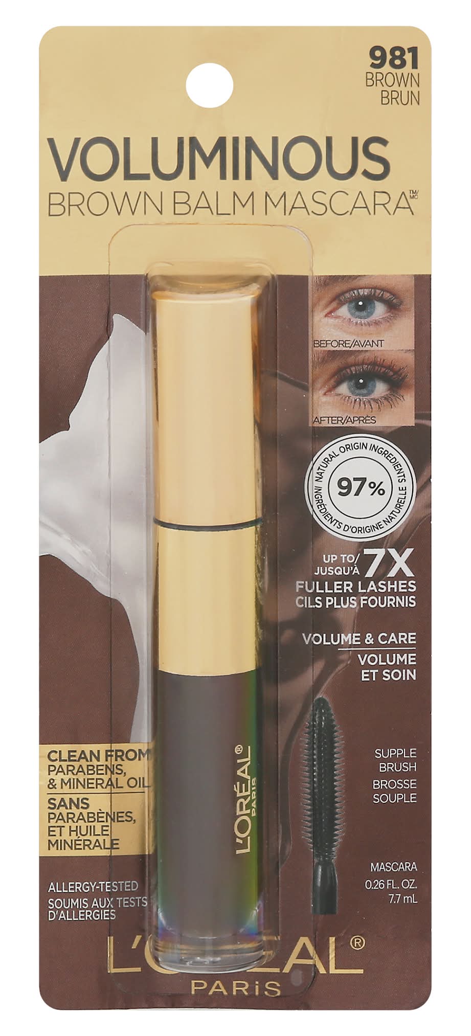 Up to 7x fuller lashes. Volume & care. Clean from parabens, & mineral oil. Allergy-tested. Our 1st balm-in-mascara with only essential ingredients for fuller, silkier, healthier looking lashes. Iconic volume, ultimate care - no compromise. Up to 7x fuller looking lashes. Lashes left instantly volumized & deeply brown. Gentle, caring formula wraps lashes in care for healthy looking lashes. Clean from parabens and mineral oil. 97% natural origin ingredients we consider an ingredient to be naturally derived if it is unchanged from its natural state or has undergone processing yet still retains greater than 50% of its molecular structure from its original natural source. The remaining ingredients constitute 3% of the formula to preserve its sensoriality & stability. Removes easily with soap and water. Ophthalmologist and allergy tested. Suitable for sensitive eyes. Tested under dermatological control for safety. www.lorealparis.com. Made in USA of US and/or imported ingredients.