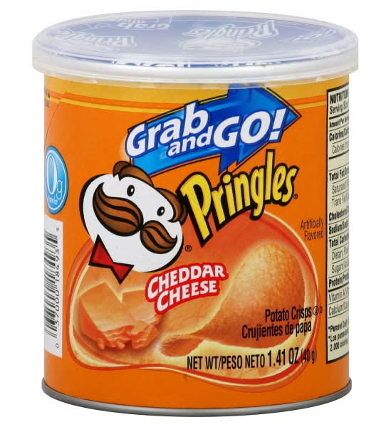 What comes after the pop of a Pringles Cheddar Cheese can The crisp, hit-the-spot taste of potato seasoned with cheesy flavor. Ingeniously shaped Pringles Cheddar Cheese potato crisps are insanely light, crispy, and never greasy. Perfect for sharing, these chips are bursting with over-the-top cheesy goodness. With the convenient, portable can, it’s easy to create your own snacking moments wherever, whenever; Grab a can as a pick-me-up for after school or pack into school lunch boxes. Bring these snacks to game time and pack a few for other Pringles fans. Stash this anytime snack in your work desk or pantry to enjoy anytime. Share Pringles at your next cookout or BBQ to turn up the flavor and fun among family and friends. Get your hands on Pringles Cheddar Cheese potato crisps for an irresistible taste experience that keeps you coming back, stack after stack. • Flavor: Cheddar cheese • Size: 5.5 OZ • Packaging: Reusable