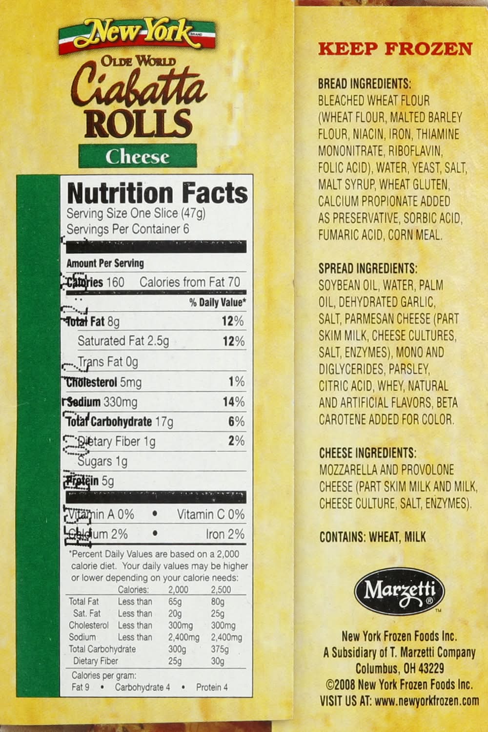 Ciabatta Rolls, Olde World, Cheese • T Marzetti Company, Columbus, OH, 43229 • Packaging: Reusable