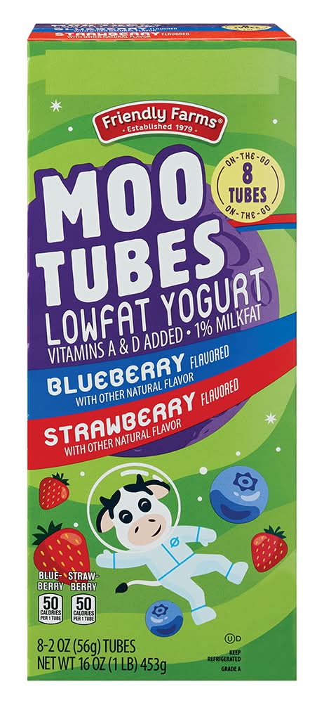 Friendly Farms Moo Tubes Lowfat Yogurt, Strawberry-Blueberry (16 oz, 8 ct)