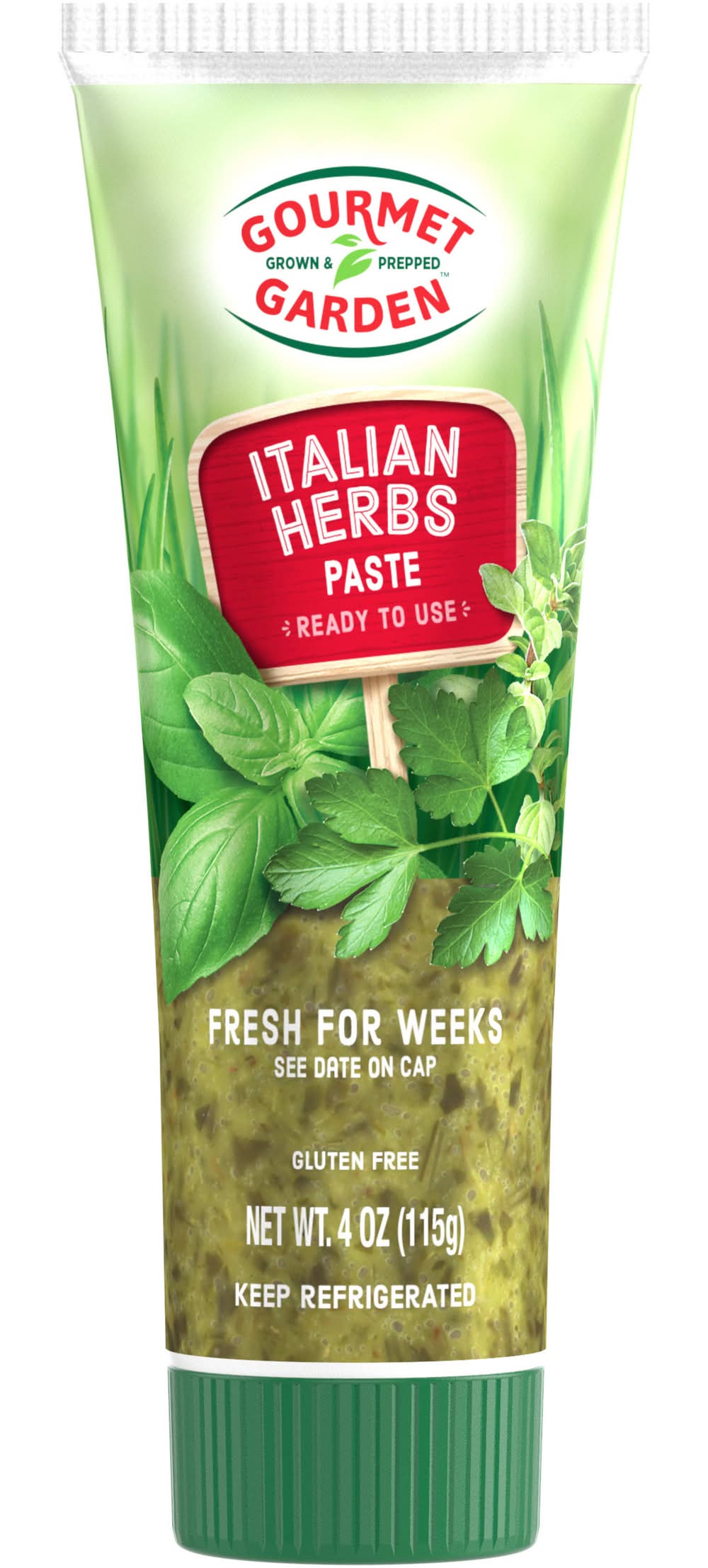Put the pasta water on to boil! One squeeze of Gourmet Garden Italian Herbs Stir-In Paste and you’ll be making Italian every night. No prep necessary- the herbs are ready to add classic Italian flavor to your dishes. Each squeezable tube features fresh herbs- basil, oregano and parsley –with the best flavor, color and aroma when it reaches your family’s table. Add Italian herbs at the end of your cooking for robust Mediterranean flavor in everything from pasta and pizza to dressings, meatballs and more. Use 1 tablespoon of paste in place of 1 tablespoon of fresh herbs. Store refrigerated for weeks after opening. • Number of servings: 23 • Packaging: Reusable