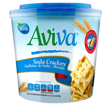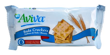 Aviva Soda Crackers offer an original flavor and are free of trans fat. These crackers are not topped with salt and are suitable for use as snacks.