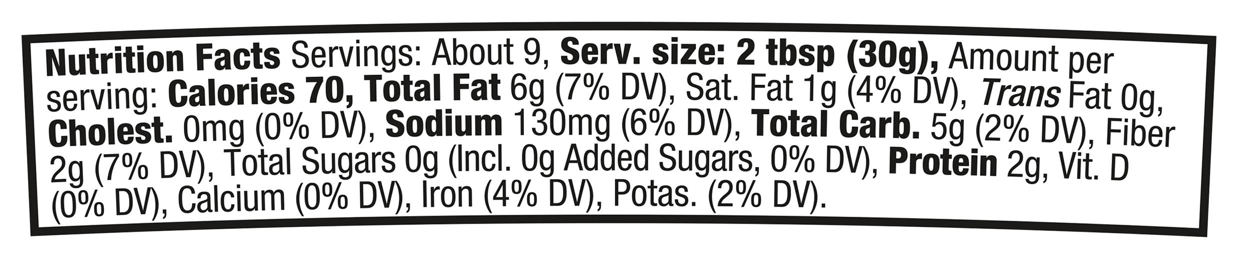 Ingredients: Chickpeas, Water, Tahini (Sesame), Soybean Oil, Salt, Garlic, Citric Acid, Potassium Sorbate to Maintain Freshness, Spices Contains: Soybeans, Sesame