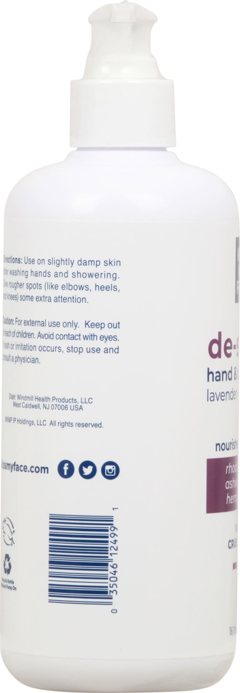 Hand & Body Lotion, Lavender + Ylang Ylang, De-Stress • Windmill Health Products, LLC, West Caldwell, NJ, 07006 • Packaging: Reusable