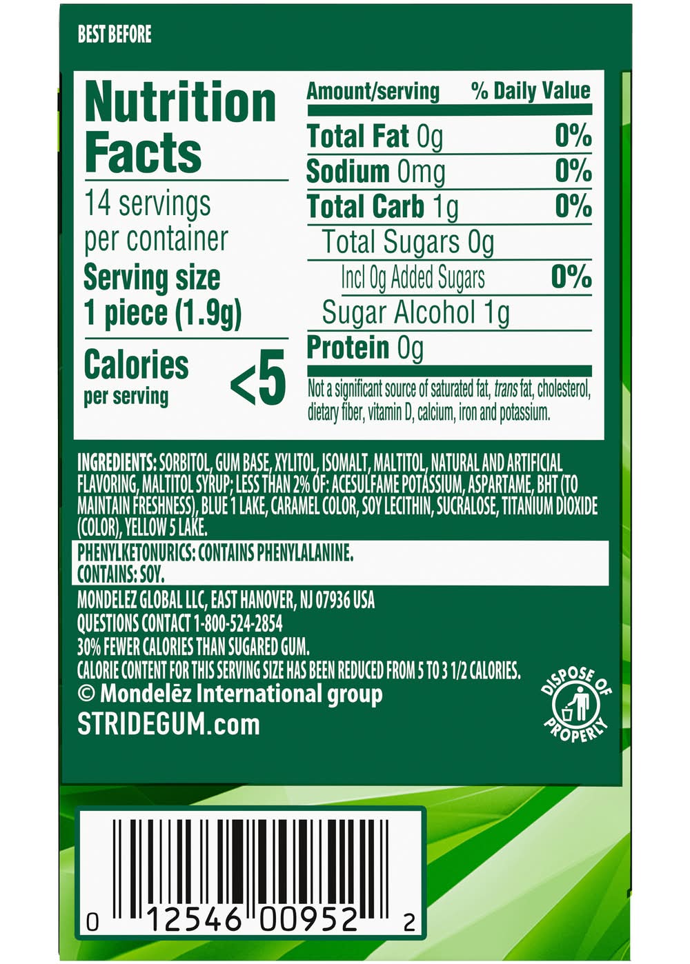 14PC STRIDE SPEARMINT SGL Mondelez,
