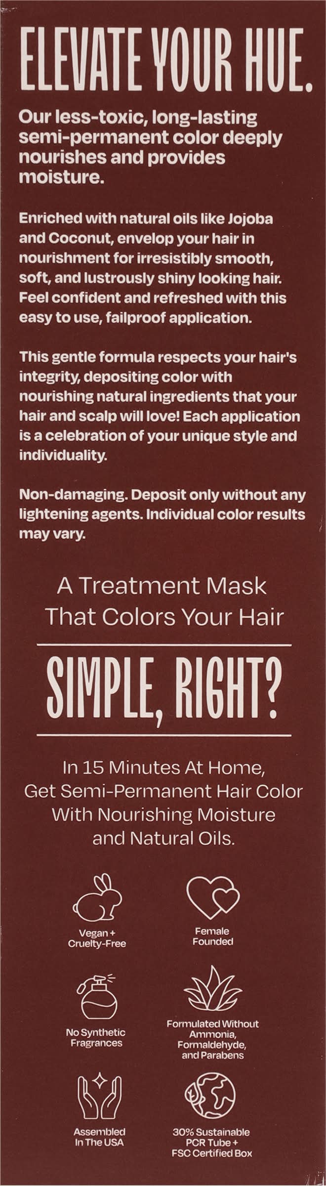 Deliver vibrant, that cares for your hair and scalp, making it easy. Infused with 13 natural active ingredients, our unique formula nourishes and rejuvenates, promoting healthy hair from root to tip. Peppermint and rosemary oils calm and balance the scalp, while coconut and jojoba oils provide deep hydration and leave your strands silky smooth. • Color: Scarlet red • One Color LLC, , Denver, CO 80209