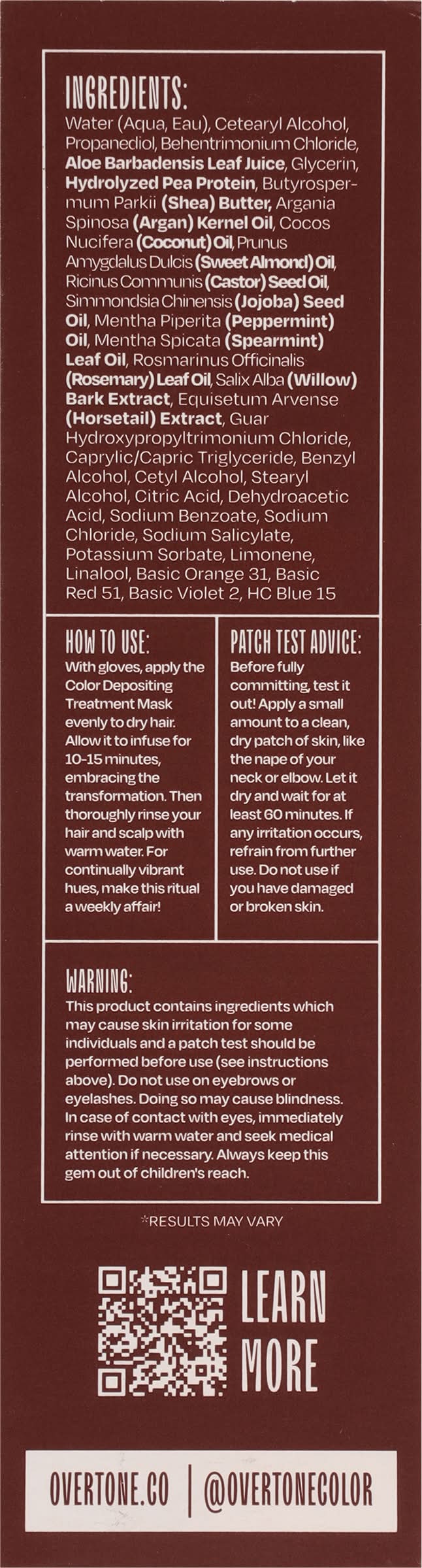 oVertone Semi Permanent Color Depositing Treatment Mask, Scarlet Red (4.5 fl oz)