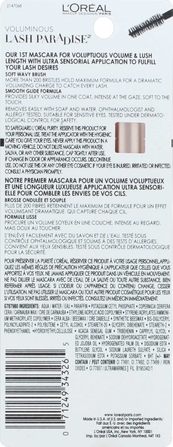 New. 91% (in a consumer test) saw intense & volumized lashes. +98% lengthening effect. 87% (in a consumer test) saw more beautiful lashes. Soft wavy brush. Voluptuous volume & length. Makeup designer. Our 1st mascara for voluptuous volume & lush length with ultra sensorial application to fulfill your lash desires. Soft Wavy Brush: More than 200 bristles hold maximum formula for a dramatic volumizing charge to catch every lash. Smooth Guide Formula: Provides silky volume in one coat, intense at the gaze, soft to the touch. Removes easily with soap and water. Ophthalmologist and allergy tested. Suitable for sensitive eyes. Tested under dermatological control for safety. www.lorealparis.com. Made in USA of US and/or imported ingredients. • Size: 1 CT • L'Oréal, New York, NY 10001