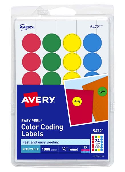 Charles Leonard Inc. Color Coding Labels come in assorted colors including red, yellow, green, and light blue. These labels are versatile, suitable for organizing items or documents, highlighting important information in presentations or reports, and aiding in inventory control, scheduling, and price marking. Designed to be removable, they feature a self-adhesive that peels away cleanly when no longer needed. The labels can be hand-written on or printed using a laser or inkjet printer. Templates for designing and printing these labels are available online, facilitating easy customization for various applications. They are effective for categorizing and marking items quickly and easily, as well as differentiating between various statuses of inventory or documents. • Color: Assorted • Size: 3/4 in