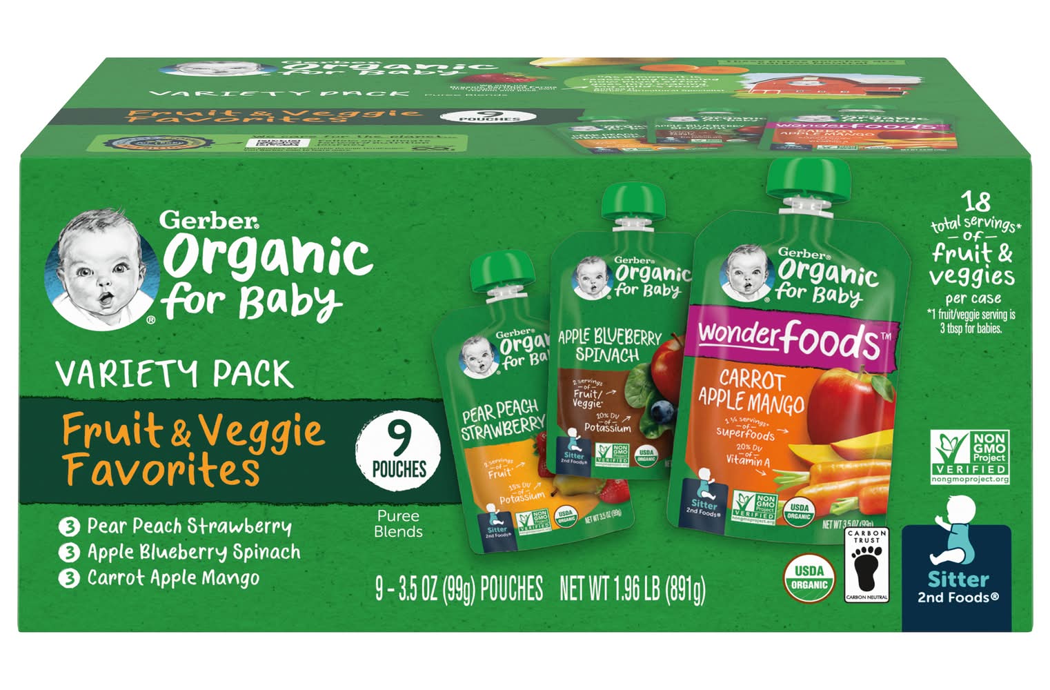 Gerber Organic For Baby Variety pack Fruit Veggie Favorites Baby Food (31.3 oz, 9 ct)