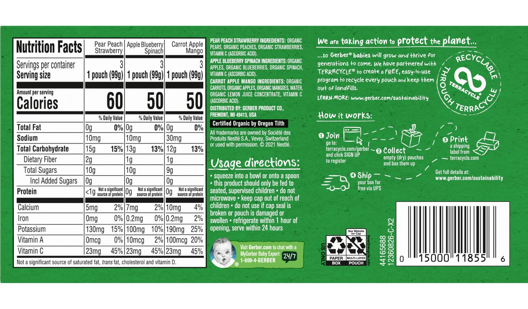 • Number of servings: 3 • Gerber Products Co., Fremont, MI, 49413 • Packaging: Reusable