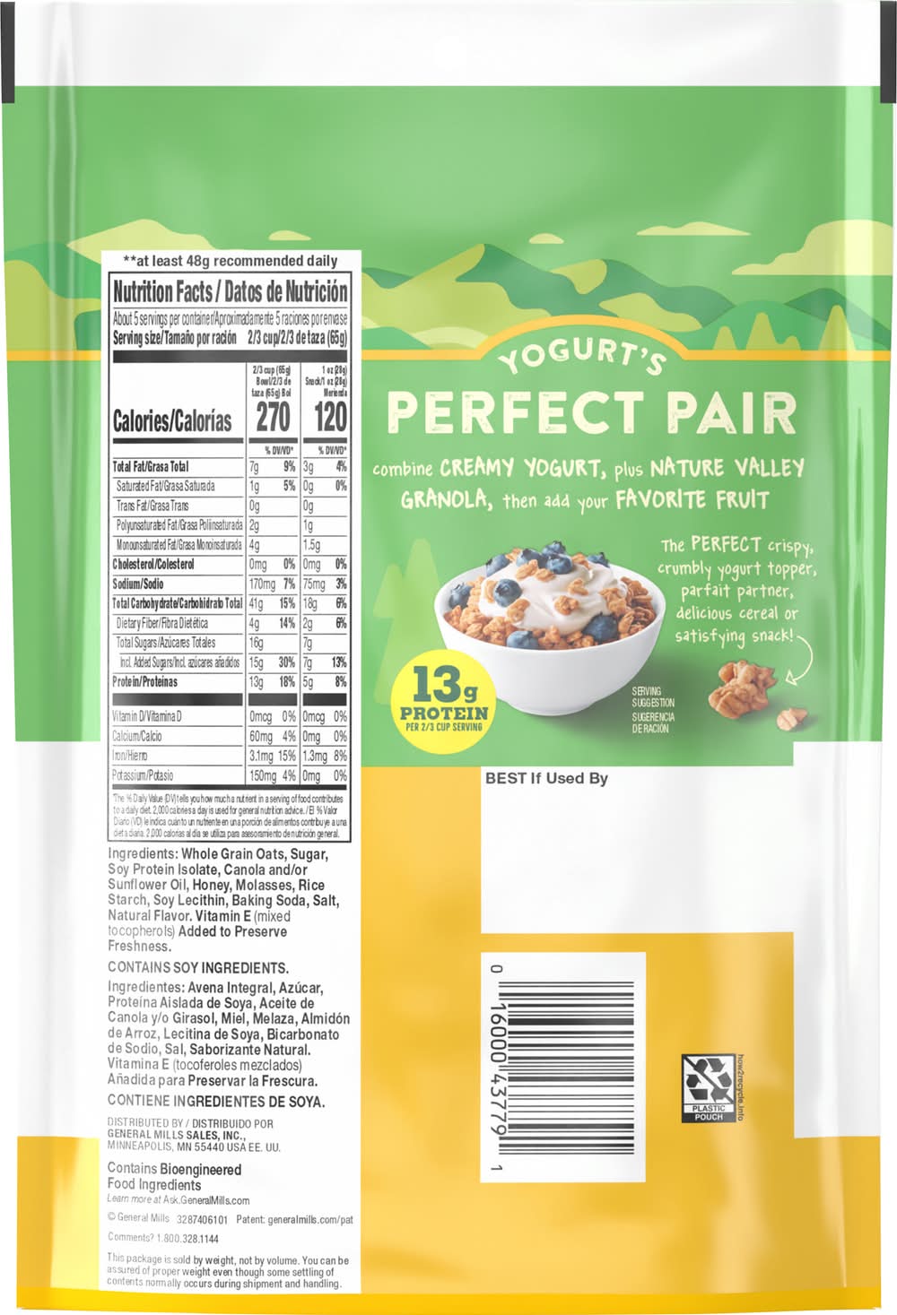 Granola, Oats & Honey, Protein • Flavor: Oats-honey • General Mills Sales, Inc., Minneapolis,MN,55440 • Packaging: Reusable