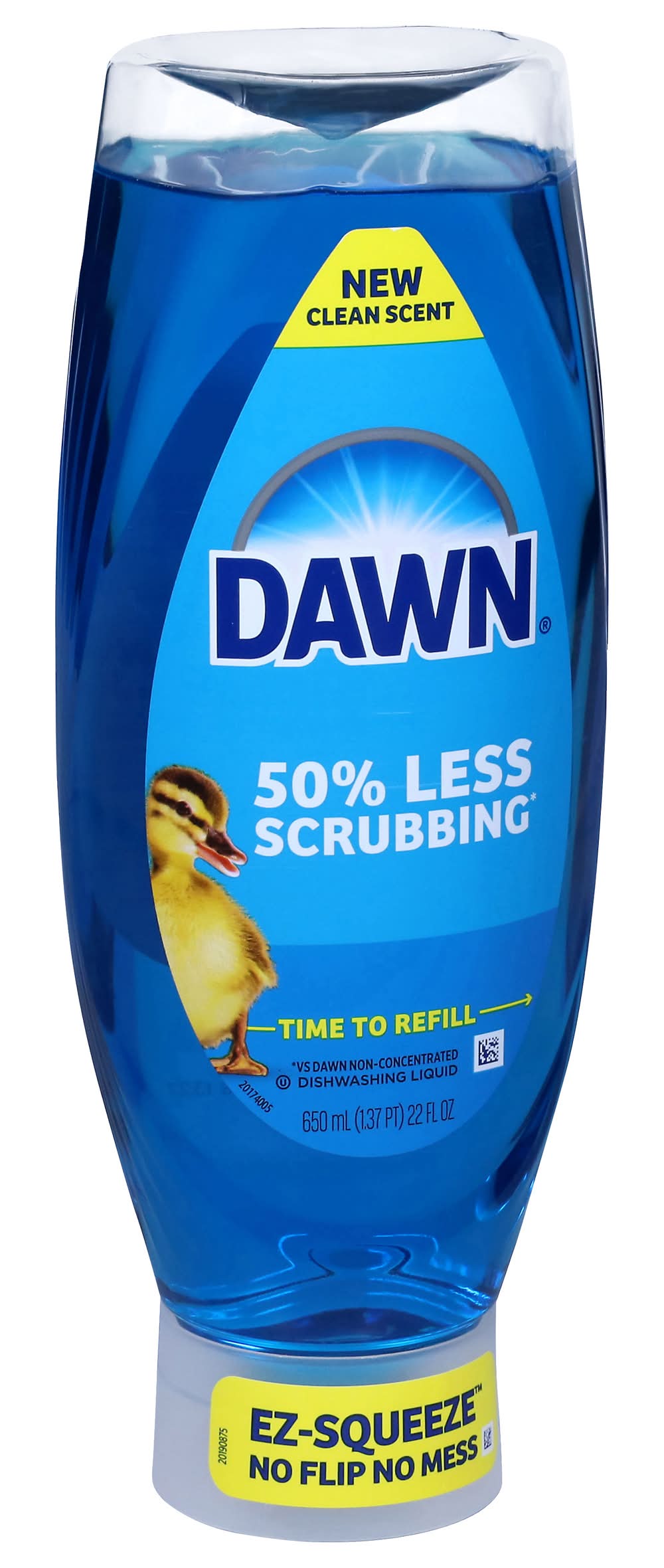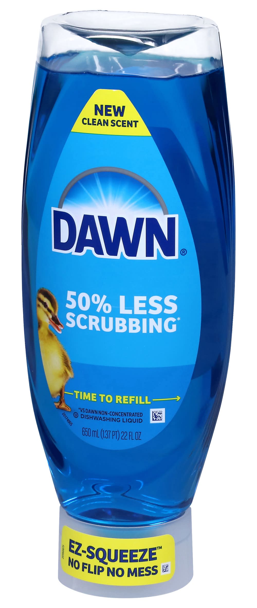 New. 50% less scrubbing (vs Dawn non-concentrated). Time to refill. Ez-squeeze. No flip no mess. Dawn believes in the safety and quality of our products. • Size: 22 OZ • Procter & Gamble., Cincinnati,OH,45202 • Packaging: Reusable