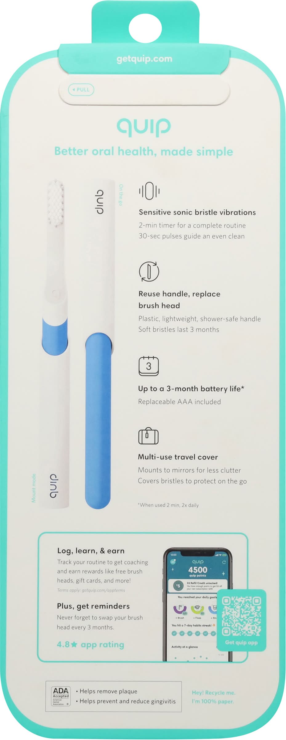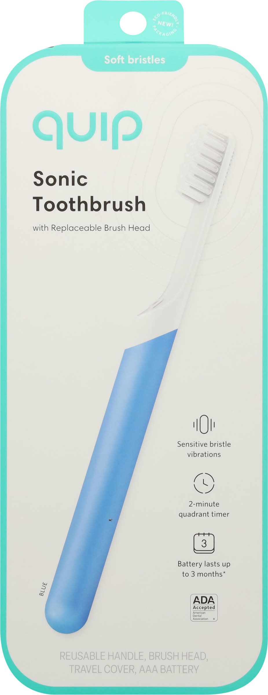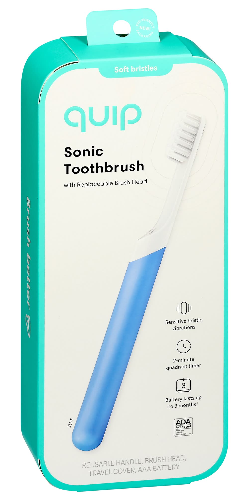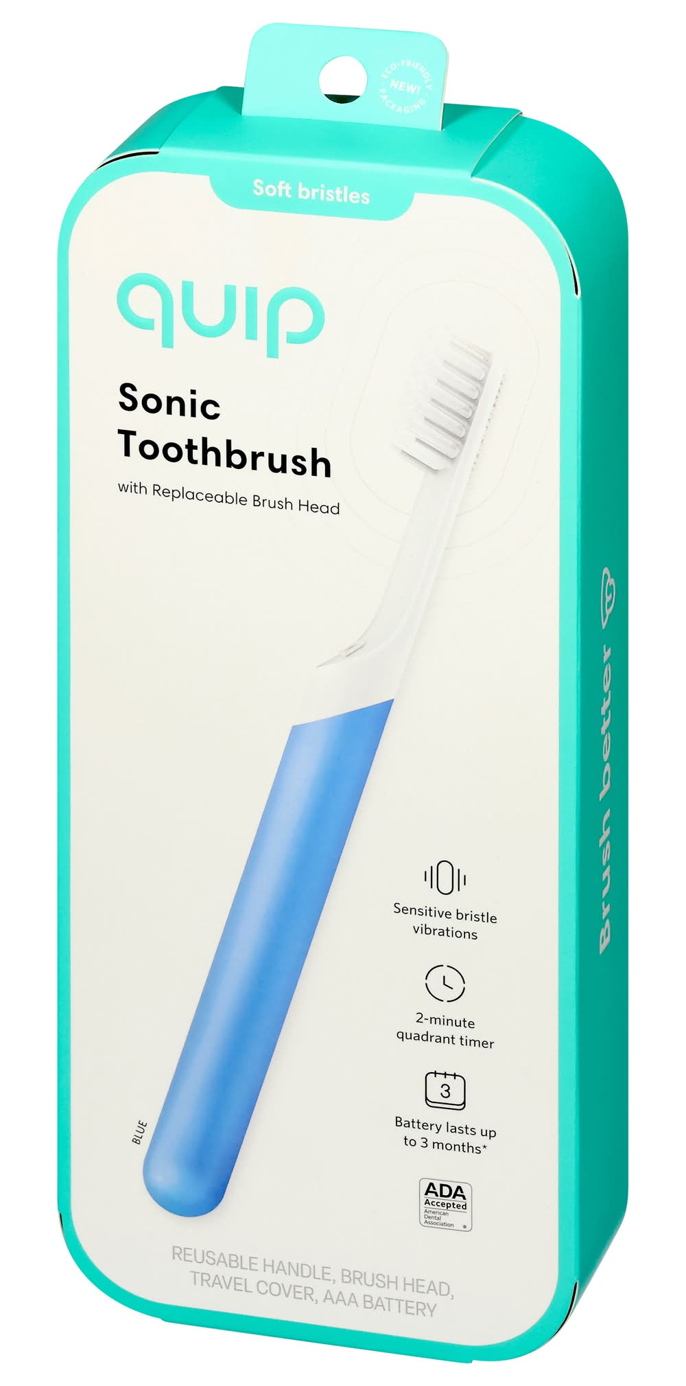 Toothbrush, Sonic, Soft Bristles, Blue • Quip NYC, 45 Main Street, Brooklyn, NY, 11201 • Packaging: Reusable