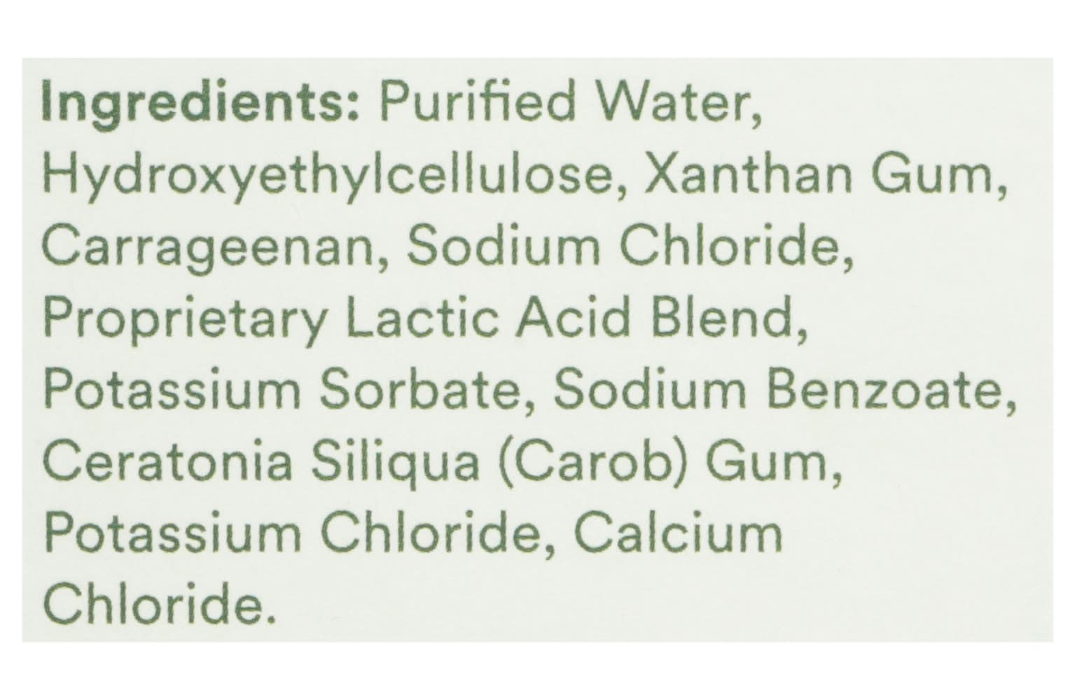 Ingredients: Purified Water, Hydroxyethylcellulose, Xanthan Gum, Carrageenan, Sodium Chloride, Proprietary Lactic Acid Blend, Potassium Sorbate, Sodium Benzoate, Ceratonia Siliqua (Carob) Gum, Potassium Chloride, Calcium Chloride