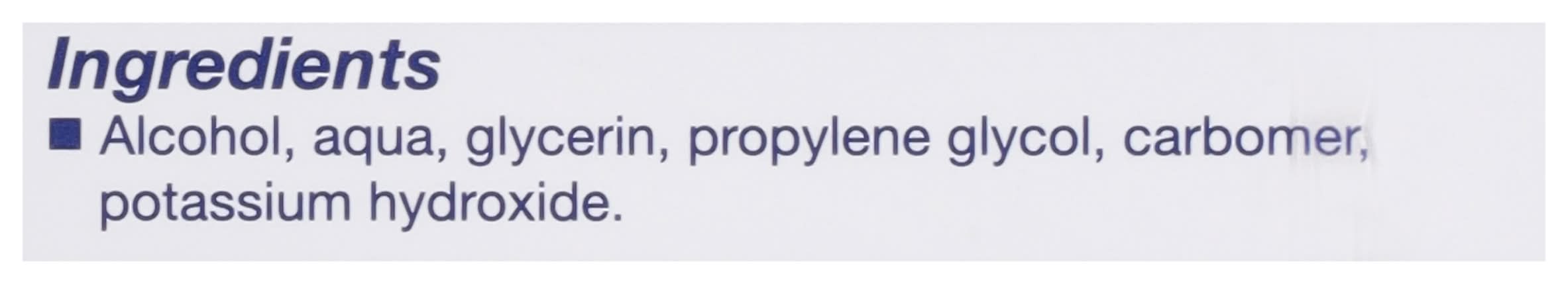Ingredients: Alcohol, Aqua, Glycerin, Propylene Glycol, Carbomer, Potassium Hydroxide