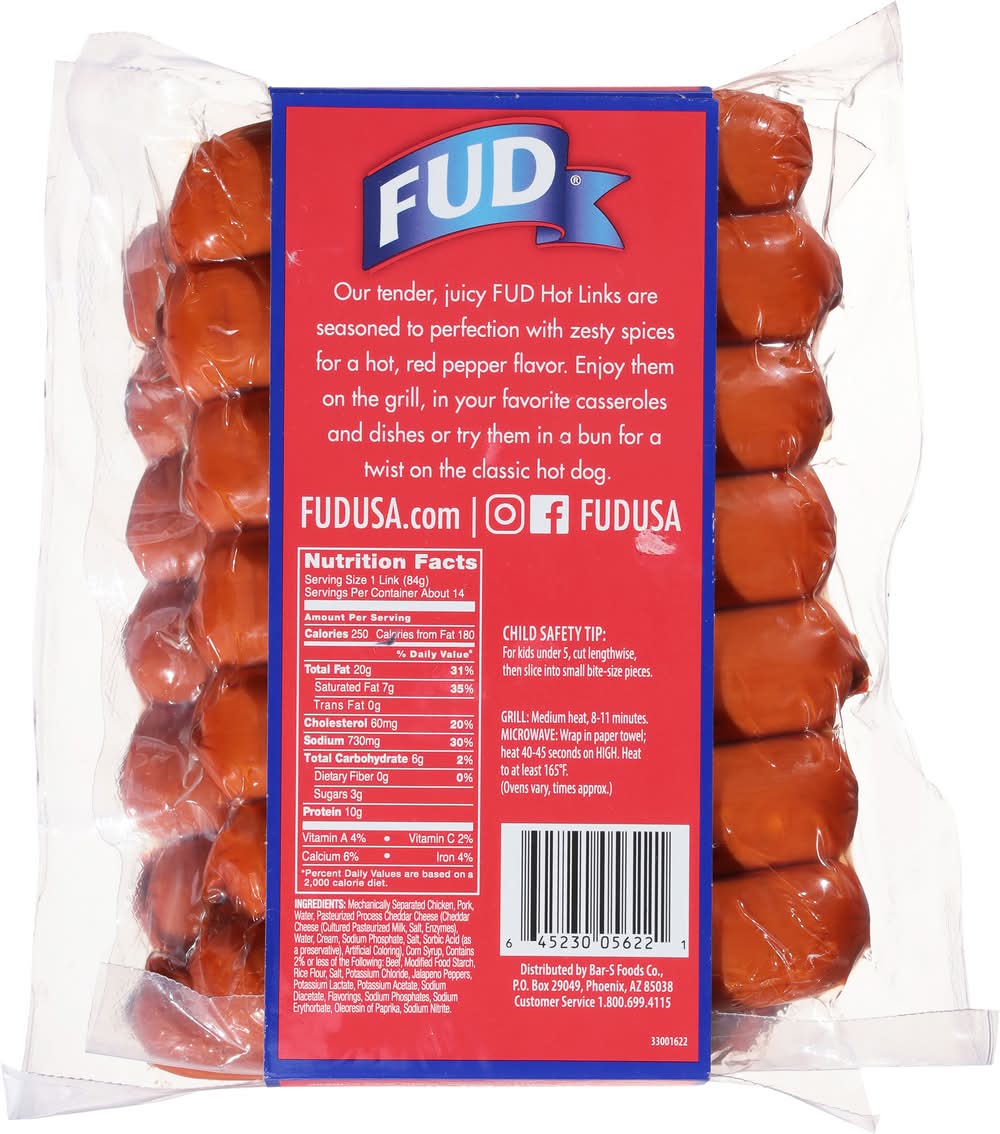 FUD Jalapeno and Cheddar Hot Links (42 oz, 14 ct)