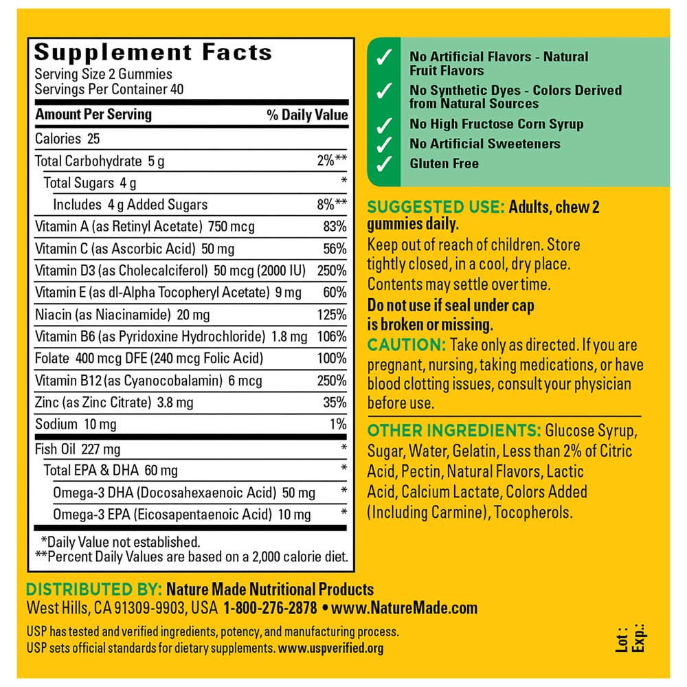 Nature Made Multivitamin + Omega-3 Gummies, 80 Count NATURE MADE NUTRITIONAL PRODUCTS, West Hills, CA, 91309-9903