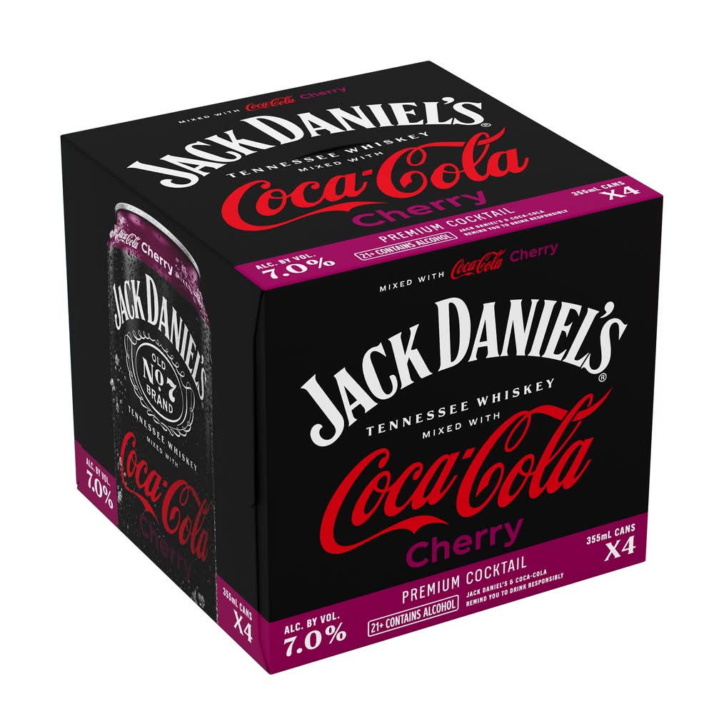This mixed drink features the sweet and smooth taste of Cherry Coke complemented by Tennessee Whiskey to create a refreshing, seasonal, and newly created whiskey cocktail. Enjoy these alcohol drinks on the go, from the fridge, or out of the cooler for a limited time. Serve it cold from the soda can or over ice. Please Drink Responsibly. • Alcohol by volume: 7% • Brown-Forman - ProductXM,