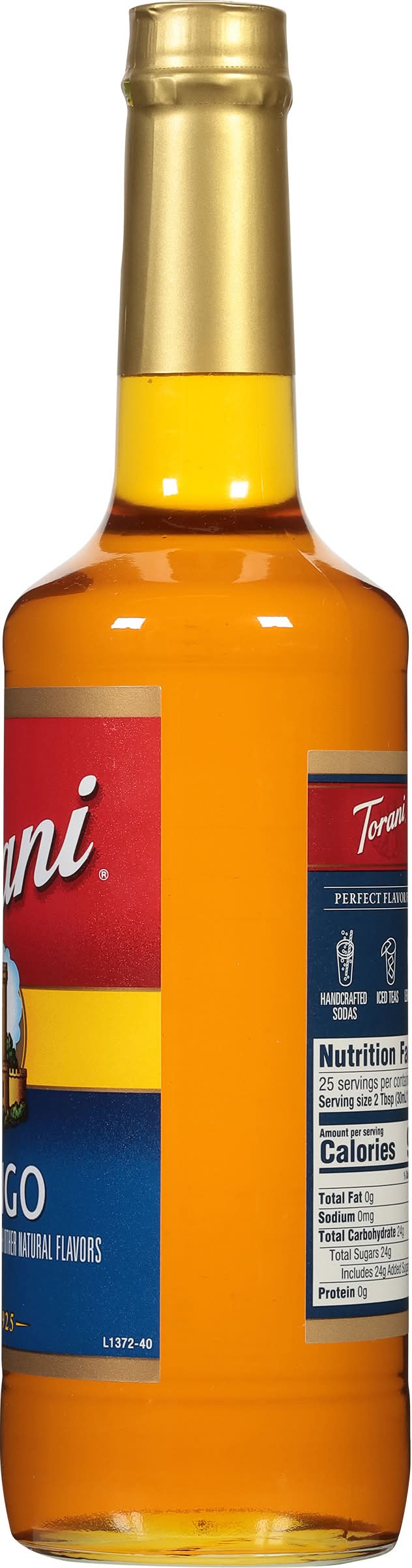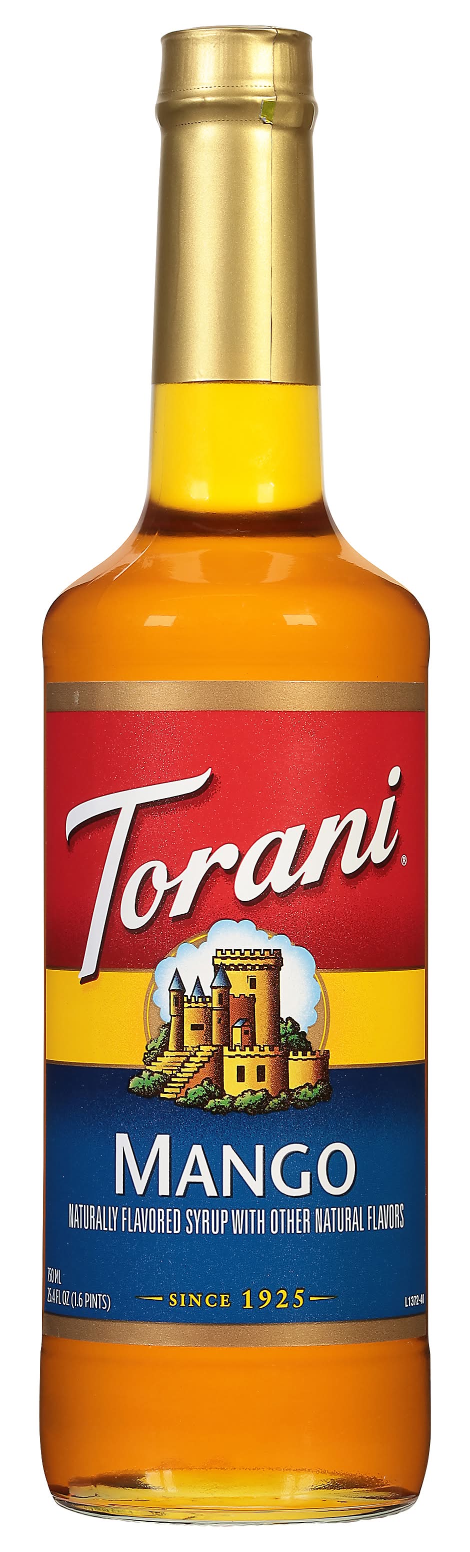 Naturally flavored syrup with other natural flavors. Since 1925. With a tropical aroma, this syrup bursts with the flavor of sweet, ripe mango. www.torani.com. 800.775.1925. www.torani.com. Certified B Corporation. Size: 12