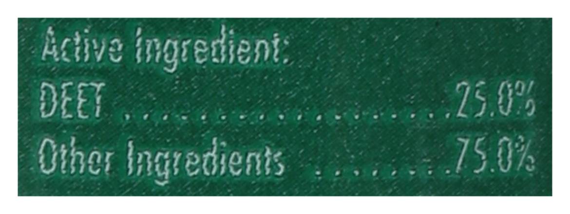 Ingredients: Active Ingredient: Deet (25.0%), Other Ingredients (75.0%)