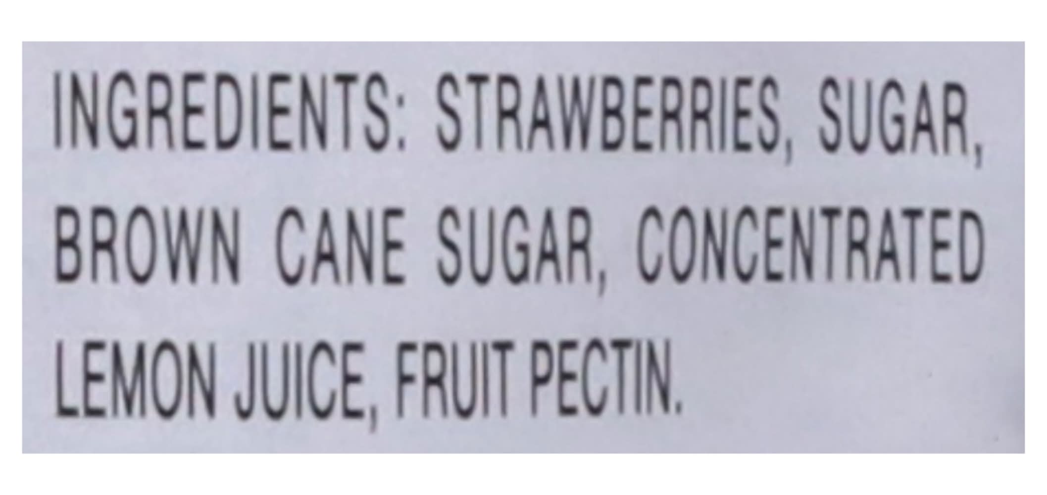 Ingredients: Strawberries, Sugar, Brown Cane Sugar, Concentrated Lemon Juice, Fruit Pectin