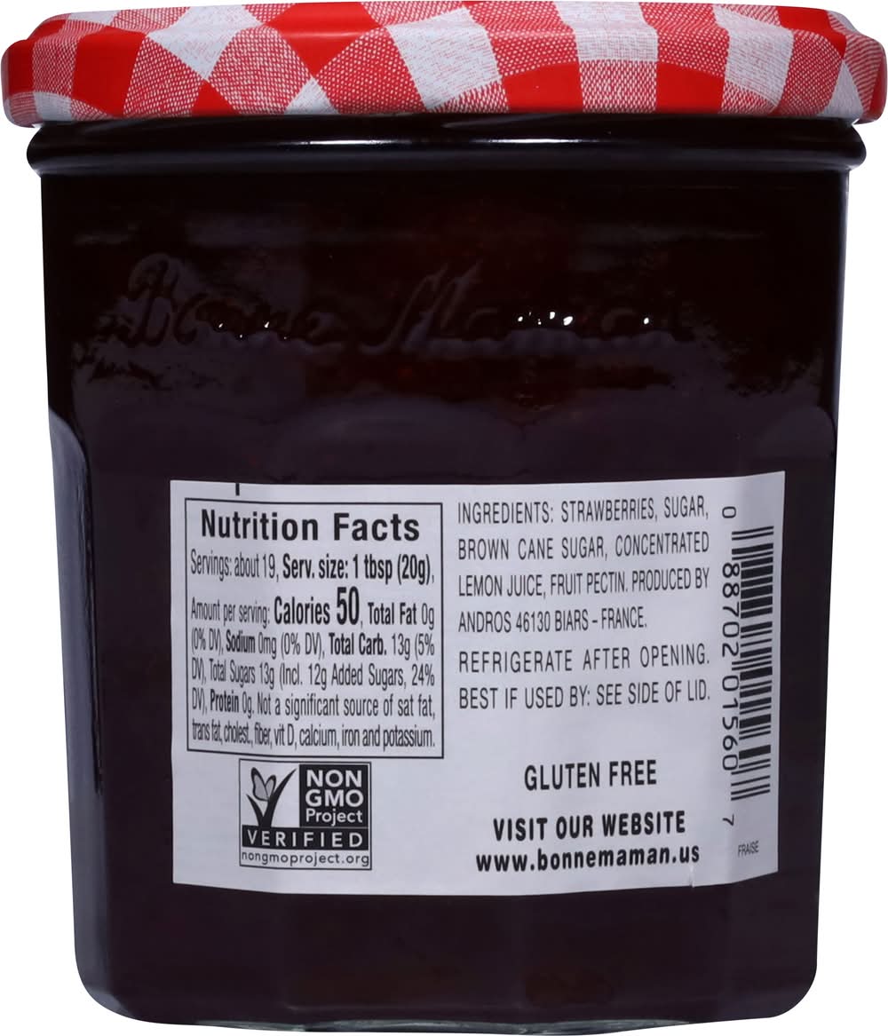 Bonne Maman Preserves are made with simple, natural ingredients and whole pieces of premium fruit for the delicious homemade taste you love. No high fructose corn syrup, additives or preservatives. Each jar of our Strawberry Preserves features an abundance of our trademark pieces of fruit. The sweet richness of cooked strawberries creates a perfect texture and brilliant flavor. Like all Bonne Maman flavors, it is made with natural ingredients including the highest quality strawberries available. • Flavor: Strawberry • Bonne maman, Address Line 11 Allee Des CerisiersCityB-5150State/ProvinceFloreffeCountryBelgiumWebsitewww.bonnemaman.us