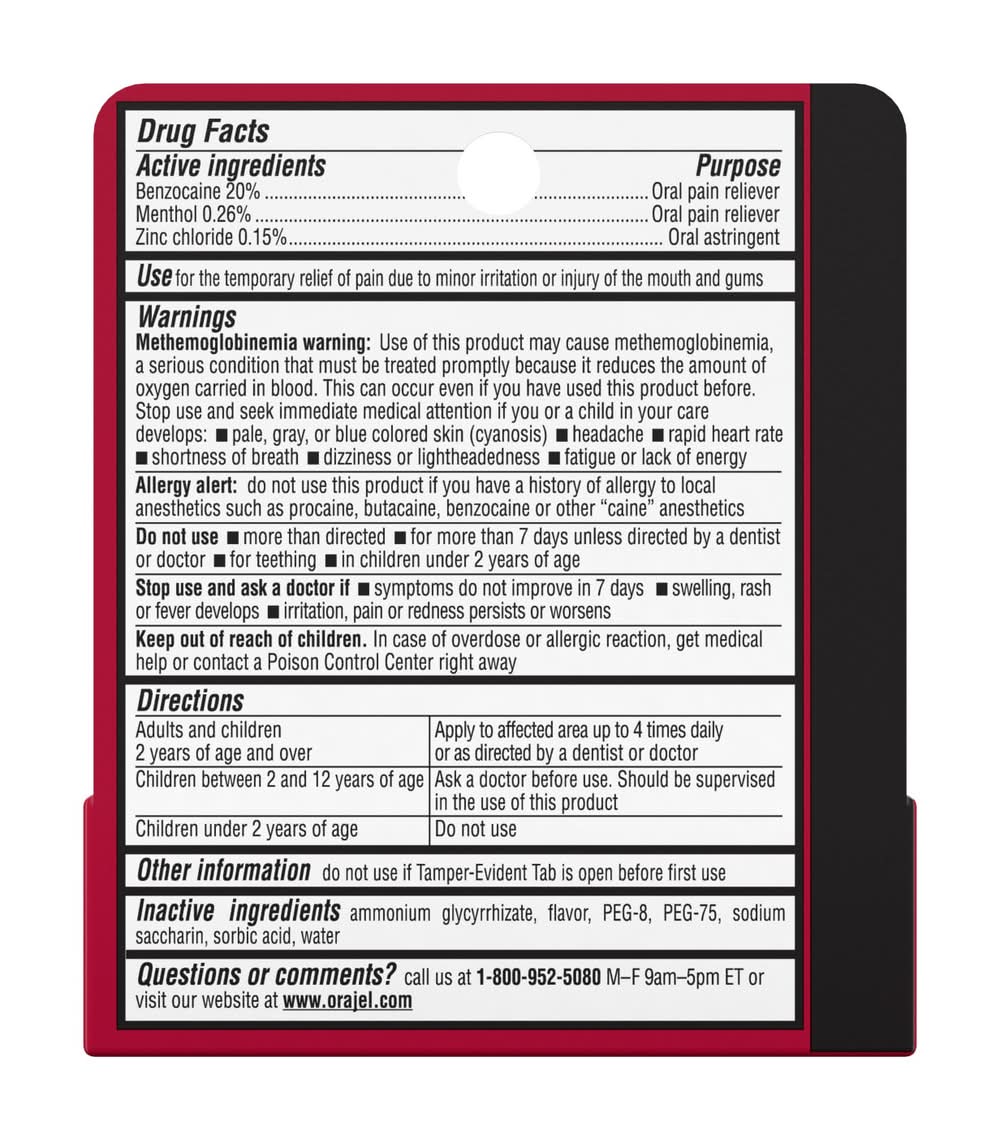 Directions: cut open tip of tube on score mark. adults and children 2 years of age and over: apply a small amount to product to the cavity and around gum surrounding the teeth. use up to 4 times daily or as directed by a physician or healthcare provider. children under 12 years of age: should be supervised in the use of this product. children under 2 years of age: ask a physician or healthcare provider.