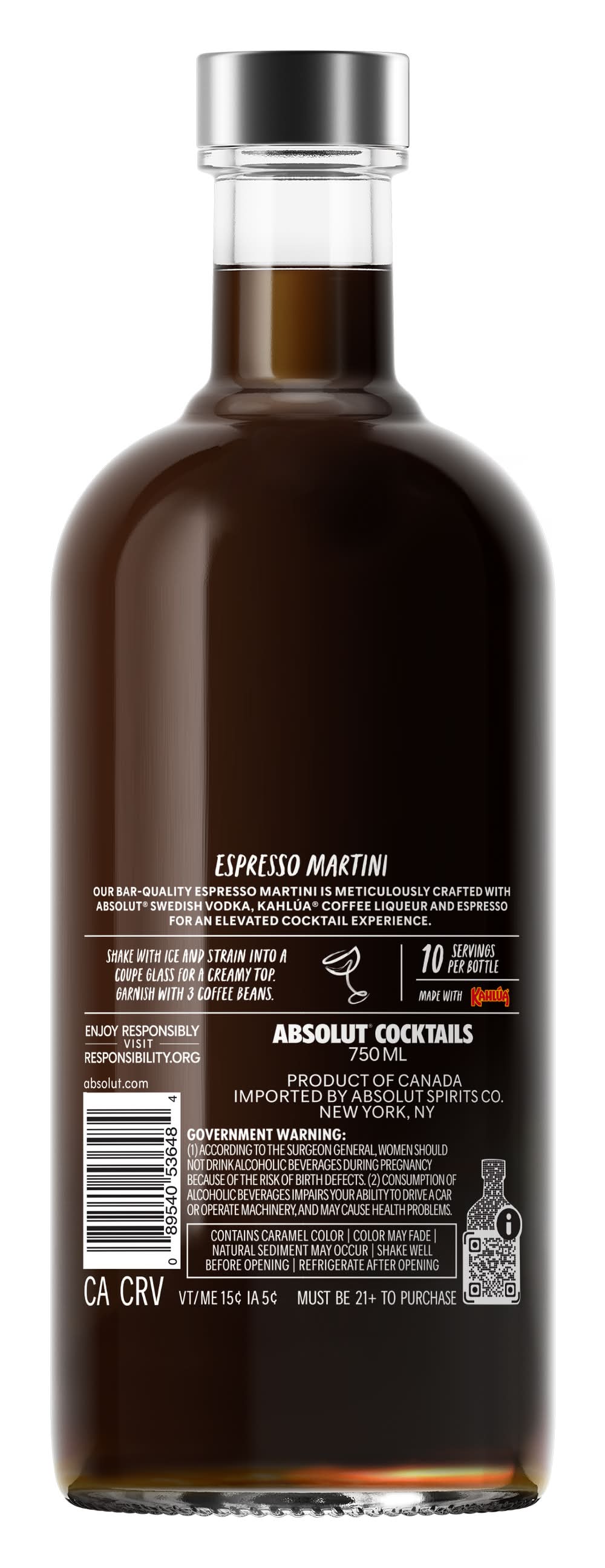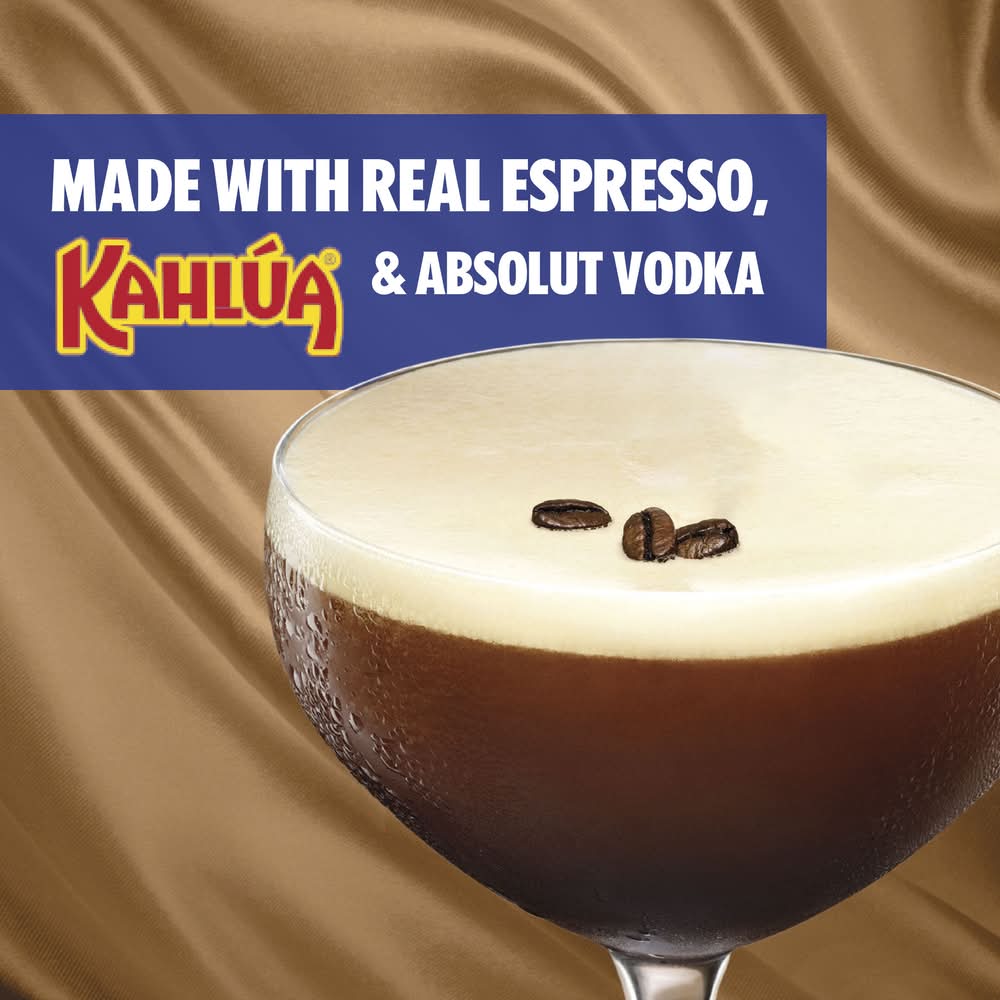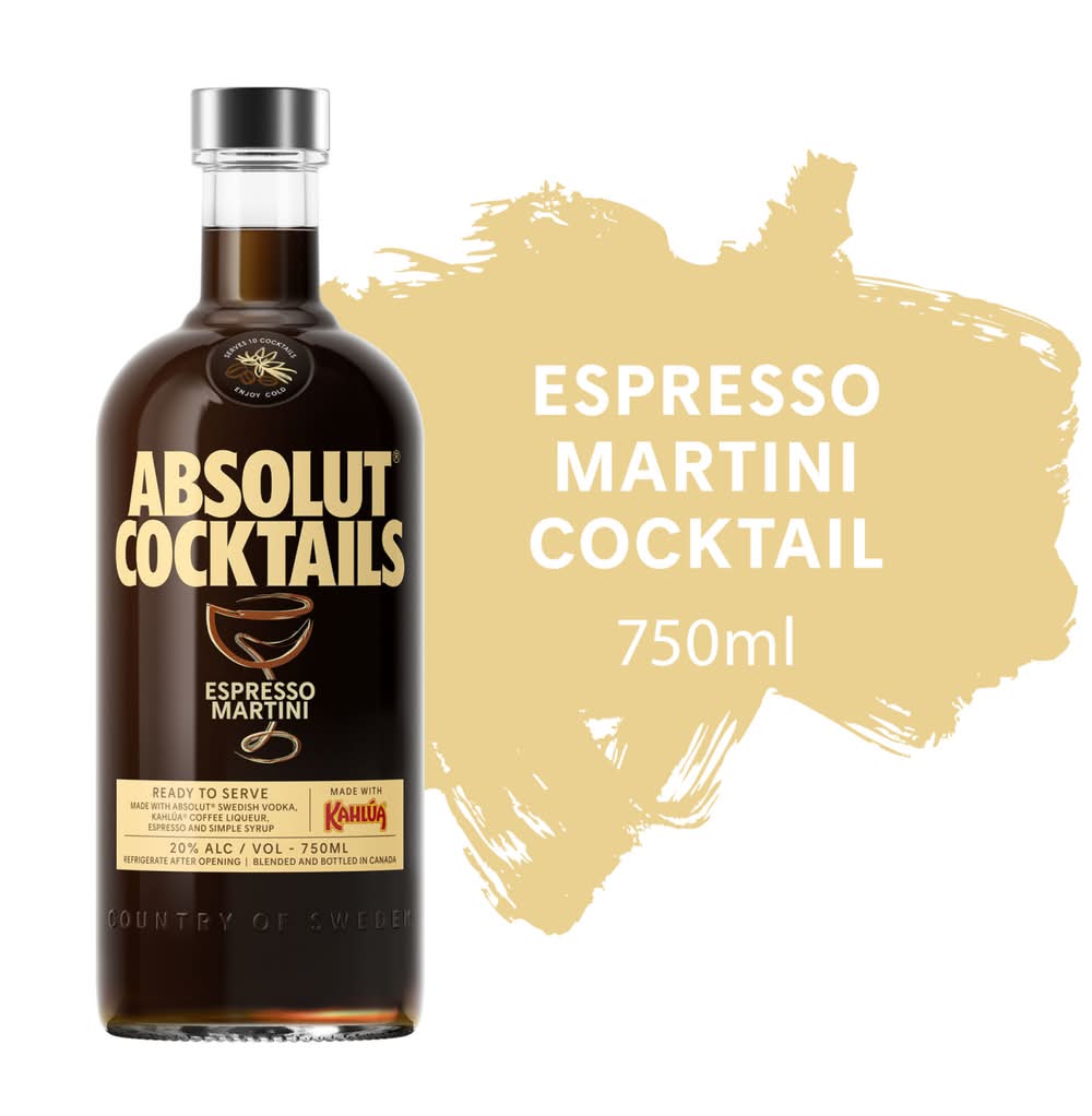 The Absolut Espresso Martini recreates this trending cocktail in a convenient format and it’s made with real espresso, Absolut Vodka, and Kahlúa Coffee Liqueur for an authentic Espresso Martini flavor Alcohol by volume: 20%