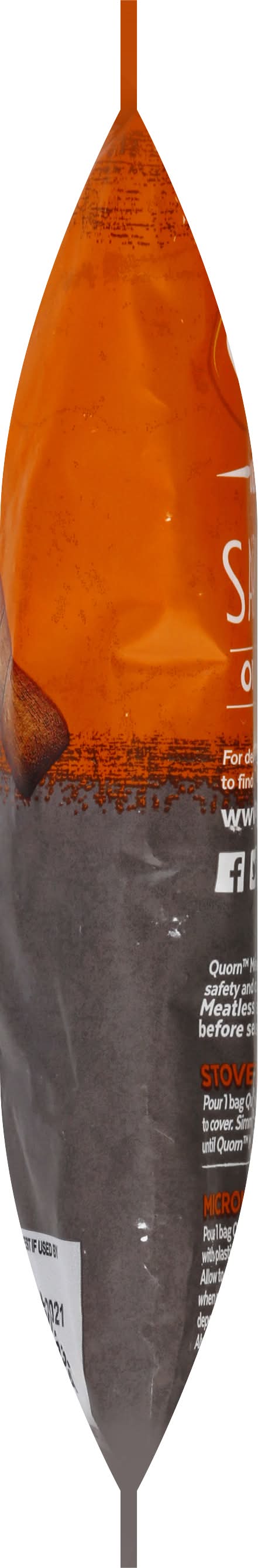 Directions for use: Quorn meatless diced chiqin pieces are not ready to eat and require further cooking for food safety and quality. Remove all packaging. Cook from frozen. Ensure quorn meatless diced chiqin pieces reach an internal temperature of 165 degrees F or above before serving. For best results, cook on the stove top. Always cook thoroughly. All appliances vary, cooking times are approximate. Stove top 12 min: (in sauce) Pour 1 bag of quorn meatless diced chiqin pieces in a pan and add enough of your favorite sauce to cover. Cook over medium heat, stirring occasionally for 12 minutes or until quorn meatless diced chiqin pieces are thoroughly heated. Stove top 16 min: (in oil) Heat 2 tablespoons of cooking oil in a large skillet over medium heat. Pour one bag of quorn meatless diced chiqin pieces to skillet and season with desired flavors. Cook, stirring frequently for 16 minutes or until pieces are golden brown and thoroughly heated. Meatless Cook thoroughly. chiqin pieces are great for stir fries, tacos, or on top of a salad. Keep frozen, cook thoroughly. Storage Instructions: Keep frozen. Do not refreeze once thawed. After cooking, Quorn Meatless pieces will keep up to 24 hours in the refrigerator. Best when used by date stamped on package. Storage recommendation: Keep frozen, cook thoroughly. Storage Instructions: Keep frozen. Do not refreeze once thawed. After cooking, Quorn Meatless pieces will keep up to 24 hours in the refrigerator.
