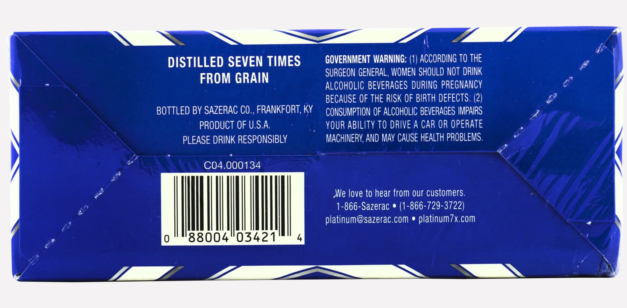 • Alcohol by volume: 40% • Sazerac, • Packaging: Reusable