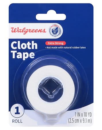 Walgreens Cloth Tape is an all-purpose and durable medical tape suitable for holding dressings and splints securely in place. It also stabilizes and supports fingers, toes, and wrists as needed. The heavy-duty backing material is designed to minimize snagging on sheets or clothing, ensuring comfortable use. Each roll measures 1 inch by 10 yards and does not contain natural rubber latex, making it a suitable choice for those with sensitivities or allergies to that material.