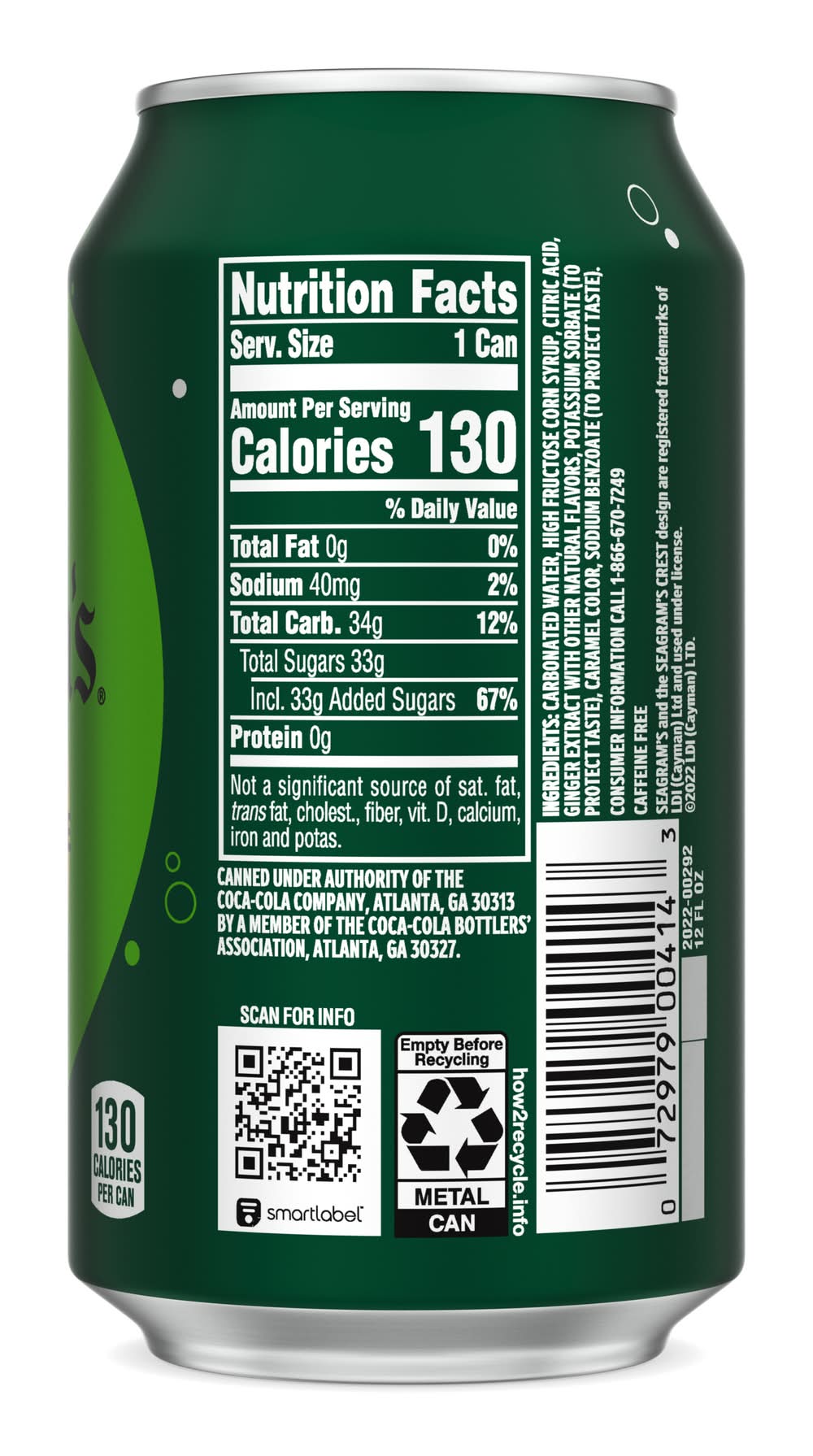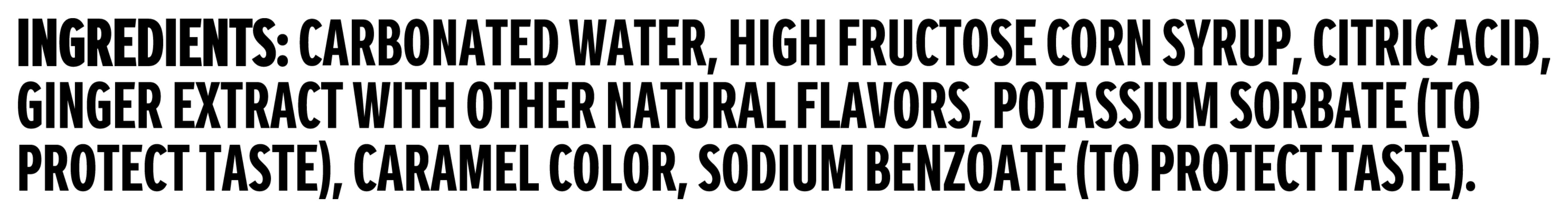 Ingredients: Carbonated Water, High Fructose Corn Syrup, Citric Acid, Ginger Extract With Other Natural Flavors, Potassium Sorbate (To Protect Taste), Caramel Color, Sodium Benzoate (To Protect Taste).