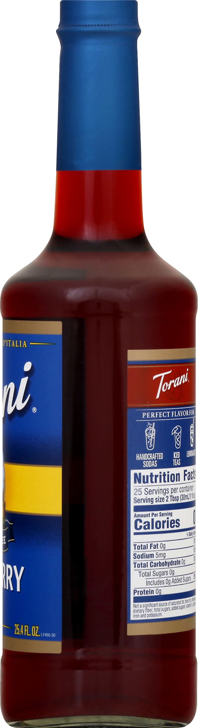 Since 1925. With a perfect balance of sweet and tart, this flavor evokes the taste of fresh, juicy raspberries with none of the calories. www.torani.com. Made in USA. • R. Torre & Co.Inc, South San Francisco, CA, 94080 • Packaging: Reusable