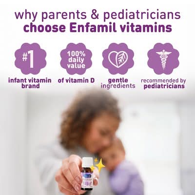 Enfamil Dual Probiotics Vit D Liquid Drops are formulated to support the immune and digestive health of infants. The product features probiotics that help maintain a healthy gut by promoting the growth of beneficial bacteria. Additionally, it includes Vitamin D to complement breast milk or formula, aiding in the development of strong bones. This supplement is specifically designed to balance a developing infant's digestive system and may help ease colic and fussiness. The formulation is free from artificial sweeteners, flavors, and silicone dioxide.