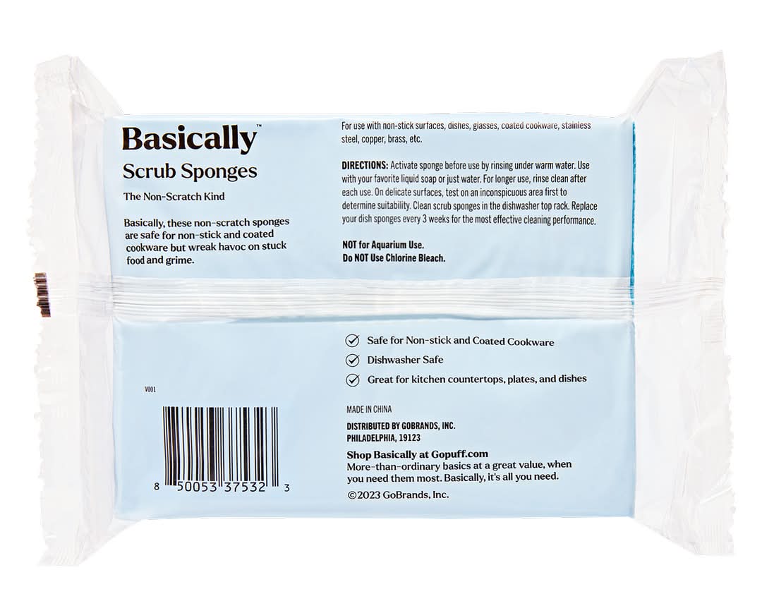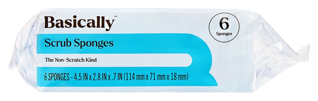Basically Non Scratch Scrub Sponges, 4.5x2.8x7 in (6 ct)