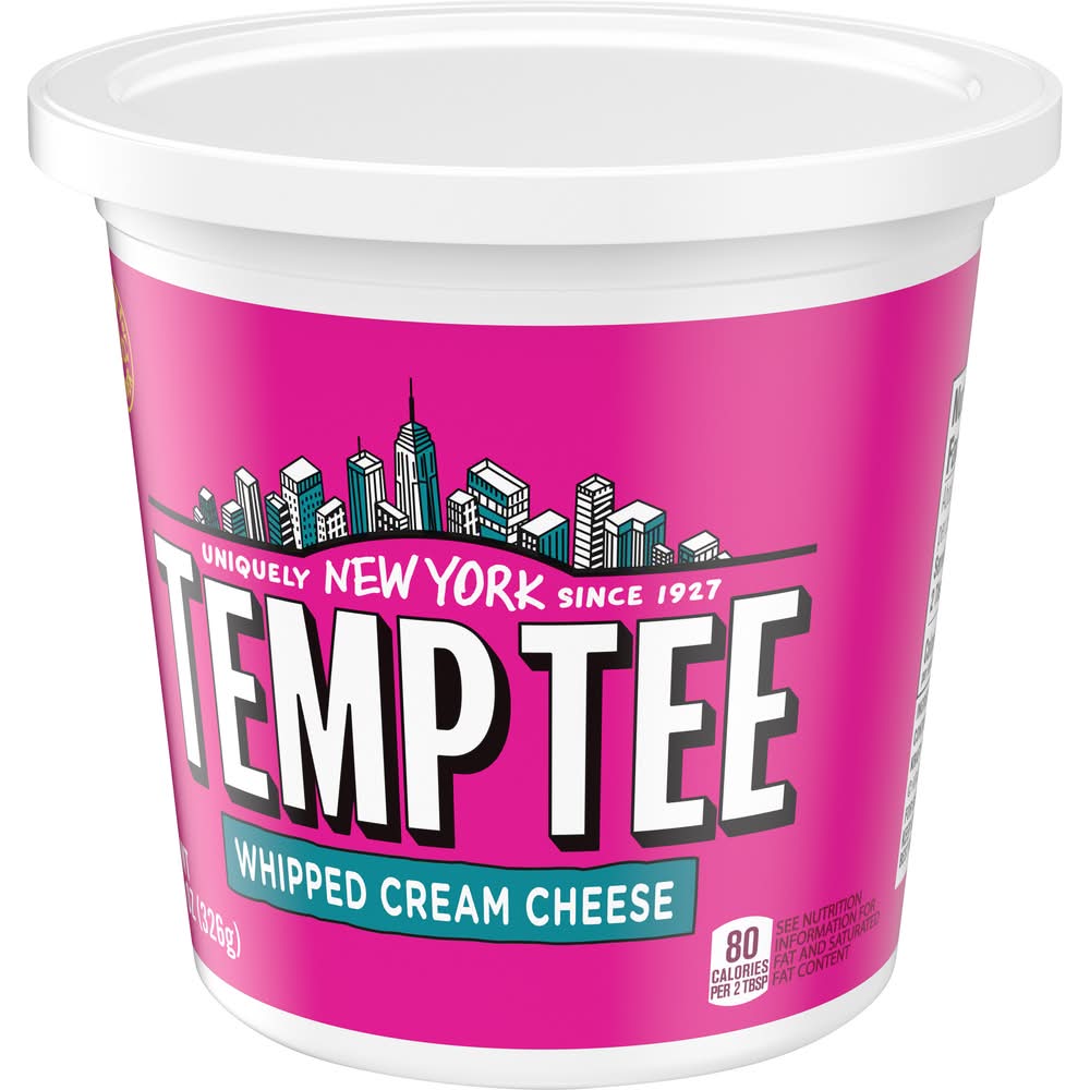 Temp Tee Cream Cheese Whipped. Uniquely New York since 1927. Ideal for bagels, spreading and non-baked recipes. Not suggested for baked recipes due to softer consistency. For best quality do not freeze. Kraft Foods,