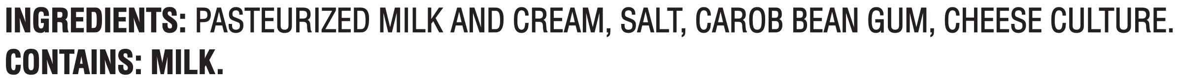 PASTEURIZED MILK AND CREAM, SALT, CAROB BEAN GUM, CHEESE CULTURE. Contains: CONTAINS: MILK. Additives: None
