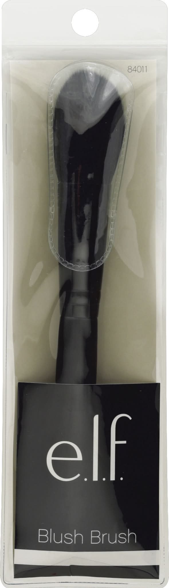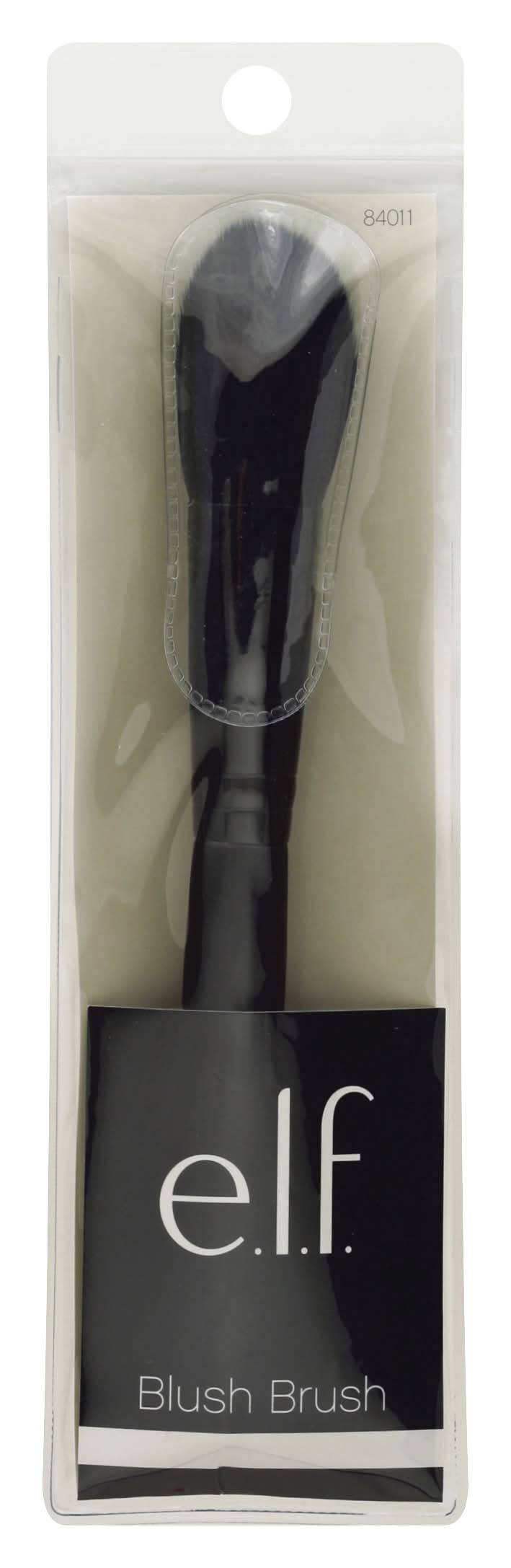 Blush Brush: Tailored bristles allow for easy maneuvering and precise color application. Use to apply blush or bronzer. Synthetic, vegan-friendly bristles are soft and easy to clean. (hashtag)playbeautifully. elfcosmetics.com. No animal testing. Made in the China. Designed in the USA. JA Cosmetics, Oakland, CA, 94607