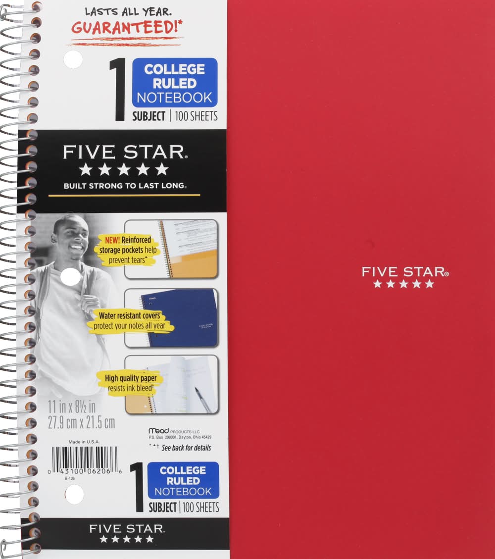 Mead 100 Sheets Five Star 1 Subject College Ruled Notebook (1.1 lbs)