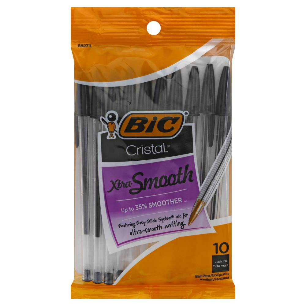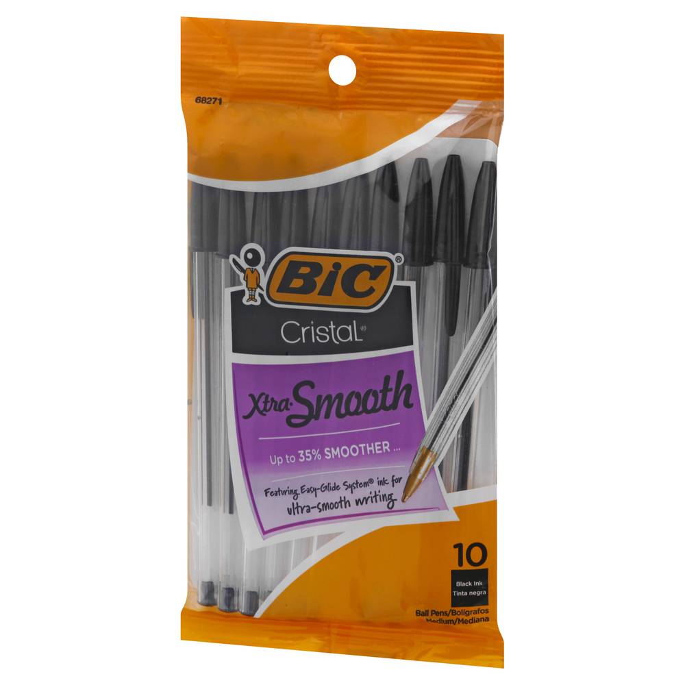 Up to 35% smoother. Featuring easy-glide system ink for ultra-smooth writing. Up to 35% smoother than BIC's traditional ballpoint ink. BIC's exclusive easy-glide system ink offers smoother writing than our traditional ballpoint ink. Our quality comes in writing! Easy glide feel the smoothness. BIC Performance Policy (US and Canada): If you are not satisfied with the performance of this product, please return it to BIC and we will gladly replace it at no cost to you. www.bicworld.com. bicfightforyourwrite.com. Fight for Your Write: Join BIC's mission to celebrate handwriting! To learn more, visit BICFightForYourWrite.com. Made in Mexico. • Size: 10 CT • Bic USA Inc., Shelton,CT,06484 • Packaging: Reusable